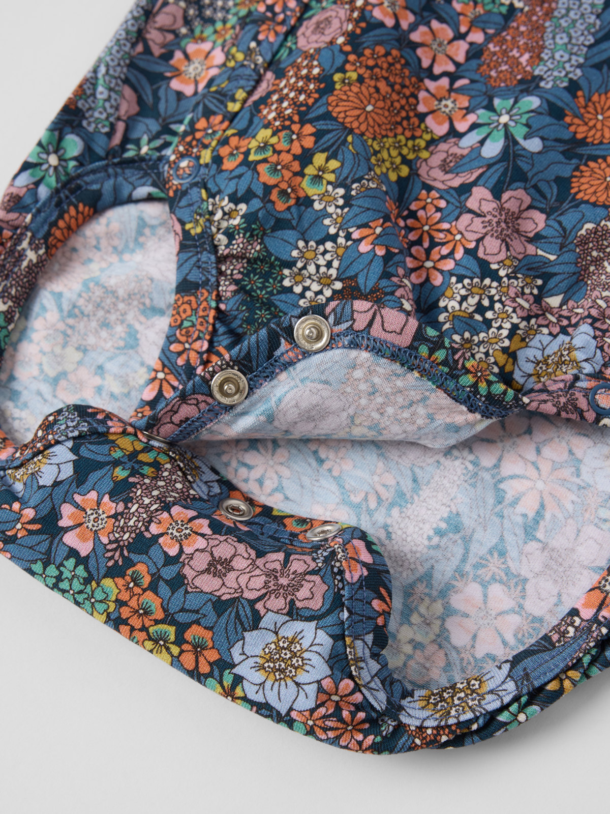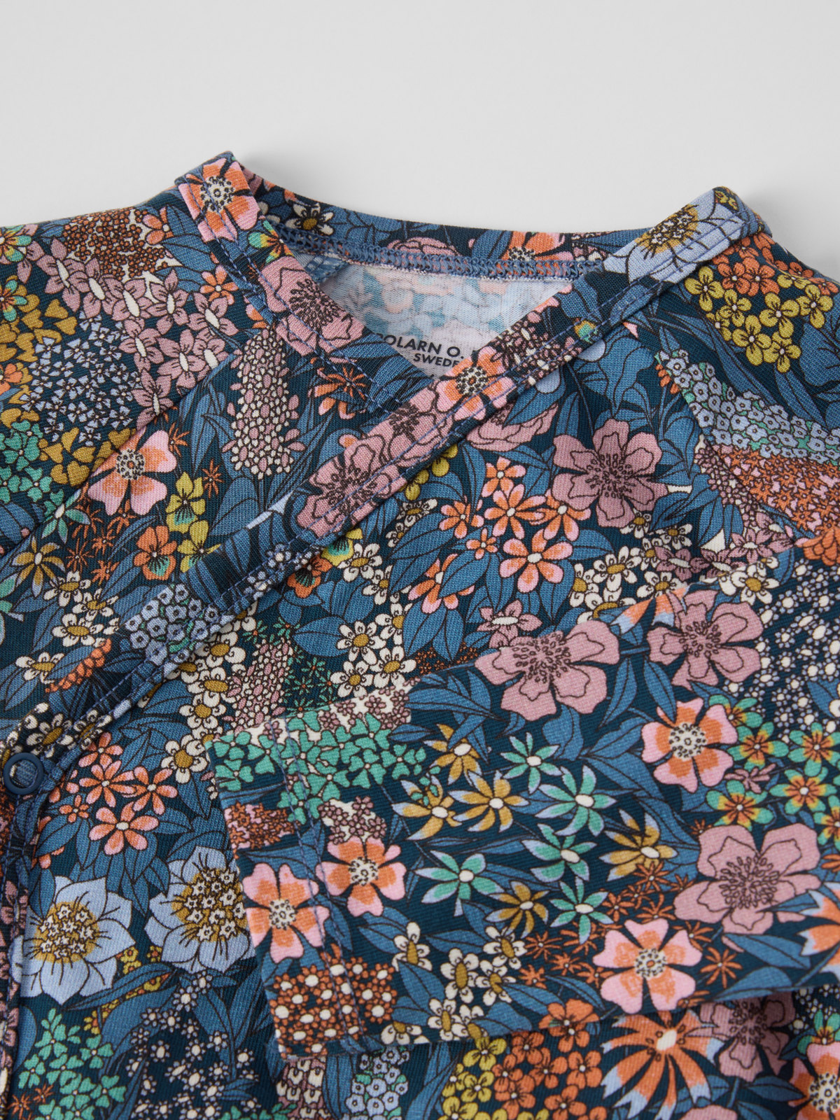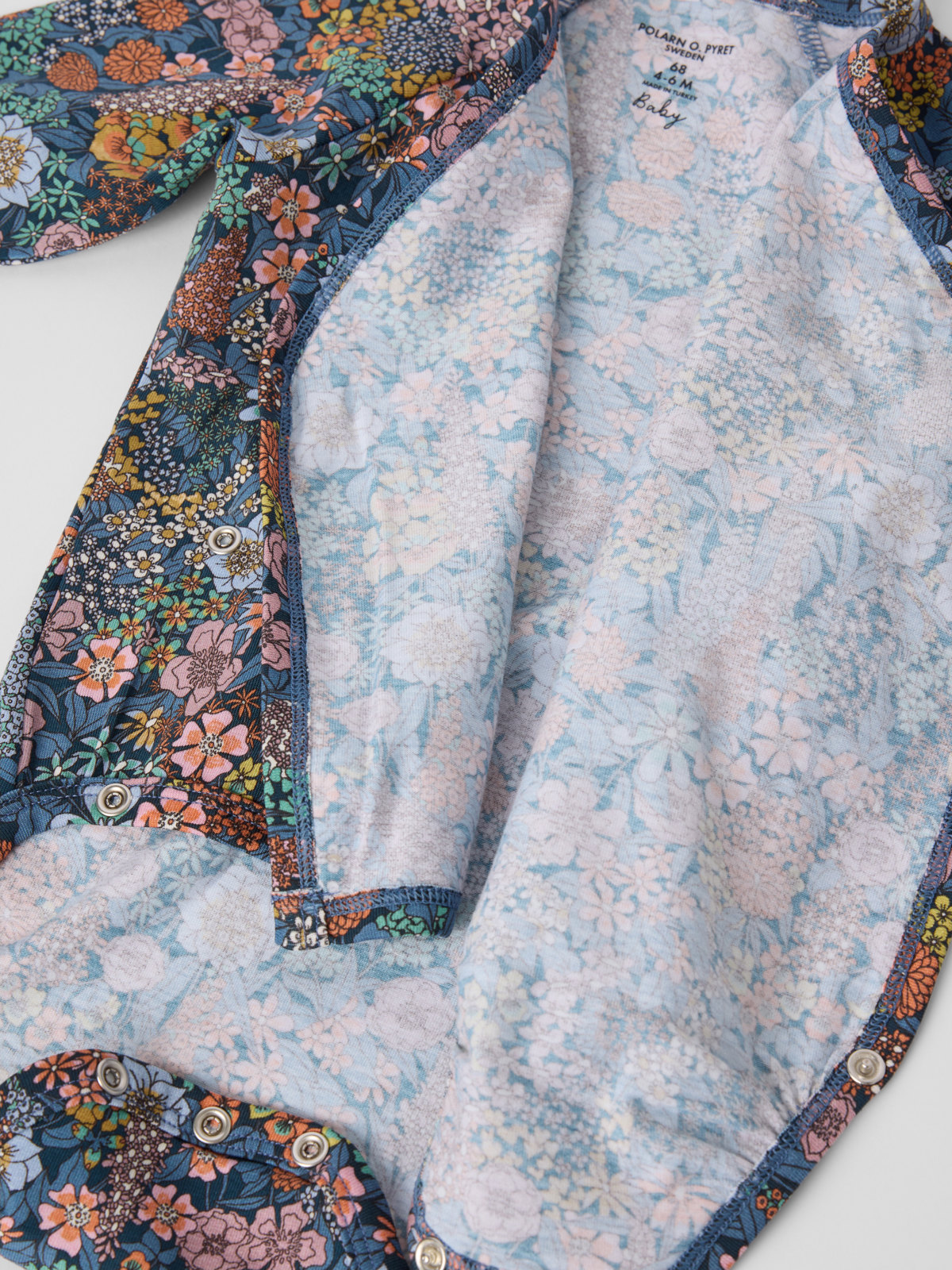 Omslagsbody i økologisk bomull for baby – en del av vårt eksklusive designsamarbeid med Liberty Fabrics. Plagget er helprintet med et av Liberty Fabrics’ ikoniske blomstermønstre og finnes i begrenset opplag. Bodyen er sydd med ekstra myke sømmer som er skånsomme mot sensitiv hud. Trykknapper langs omslagsåpningen gjør påkledningen enklere.