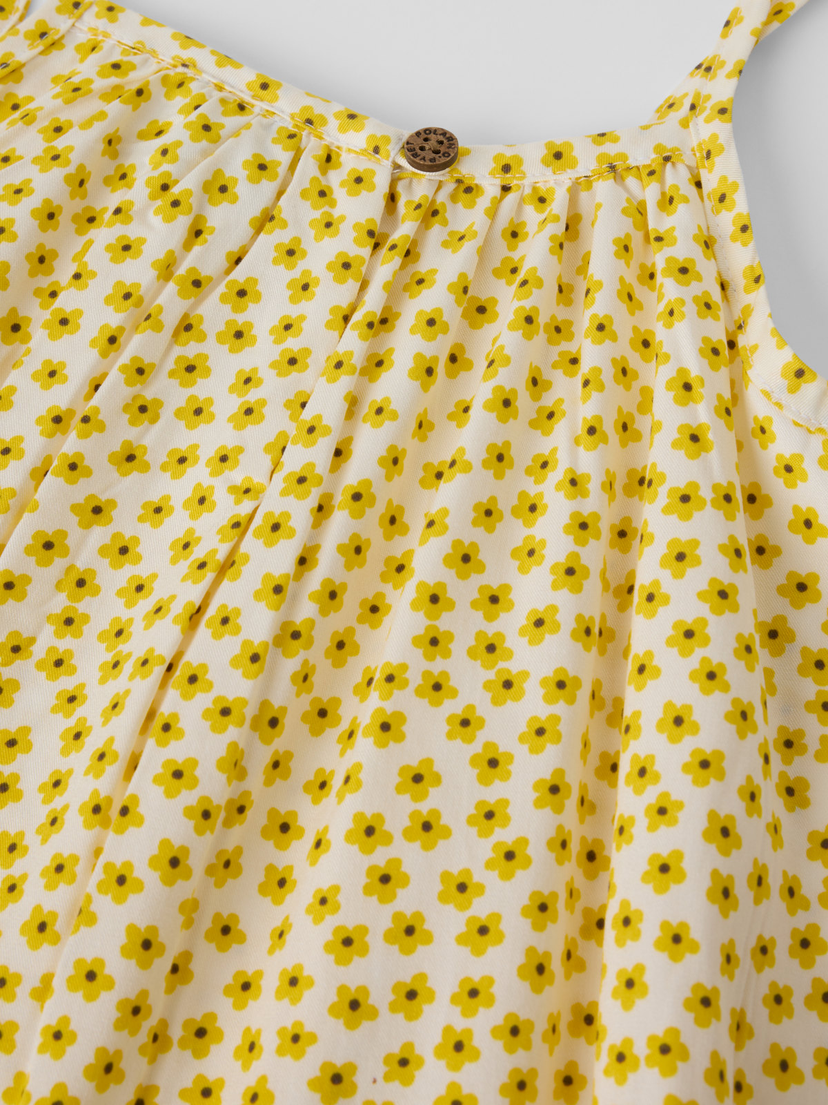 Lett og luftig sommerkjole i myk Ecovero™ Viscose-trikot – ideell for varme dager! Kjolen har smale skulderstropper og rynket skjørtedel. Perfekt for søskenmatch! blommig