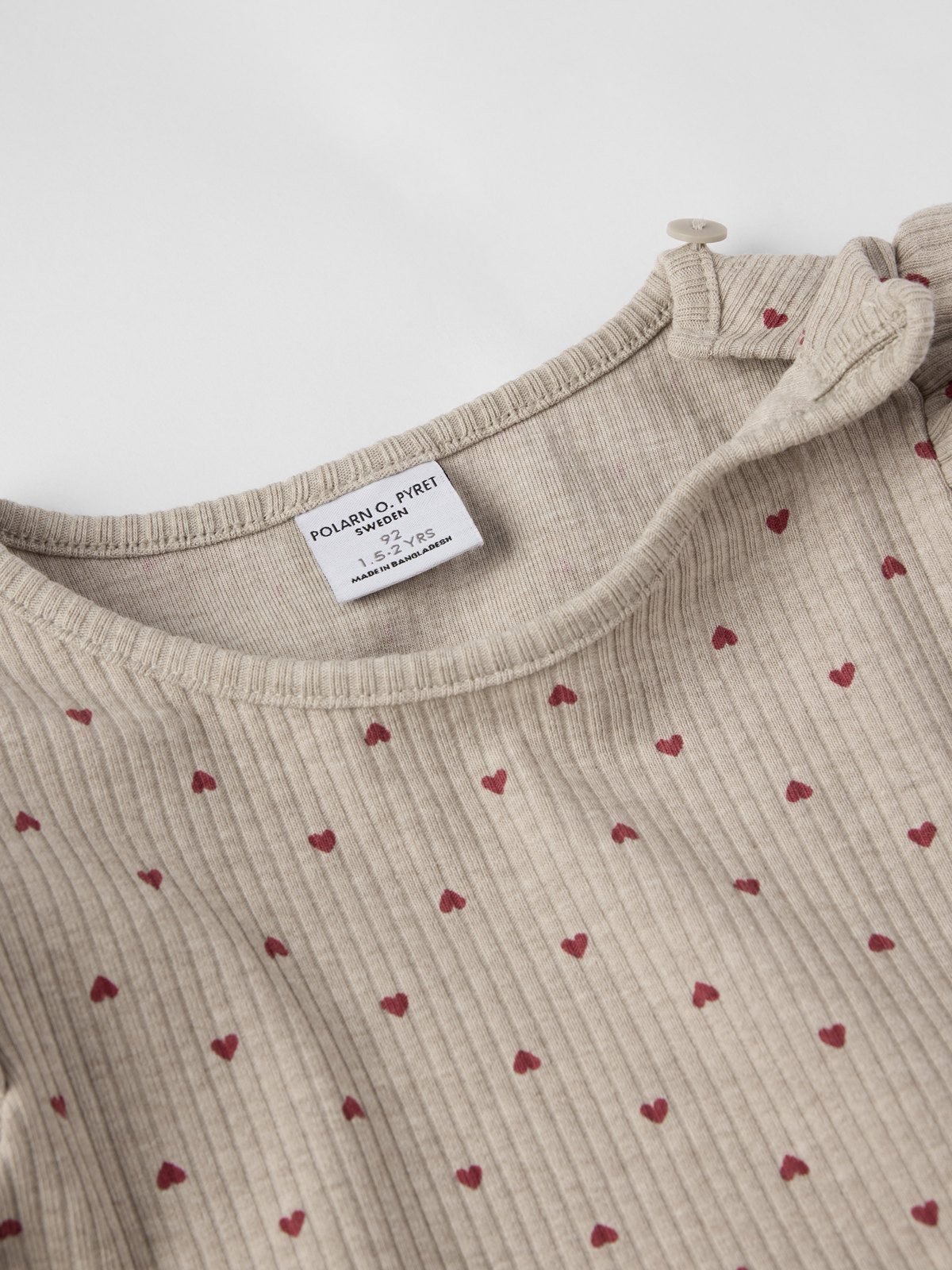 Størrelsene 86–92 har trykknapper på den ene skulderen for enklere klesskift.