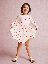 I størrelse 86-92 har kjolen høyere midje og rynket skjørtedel.