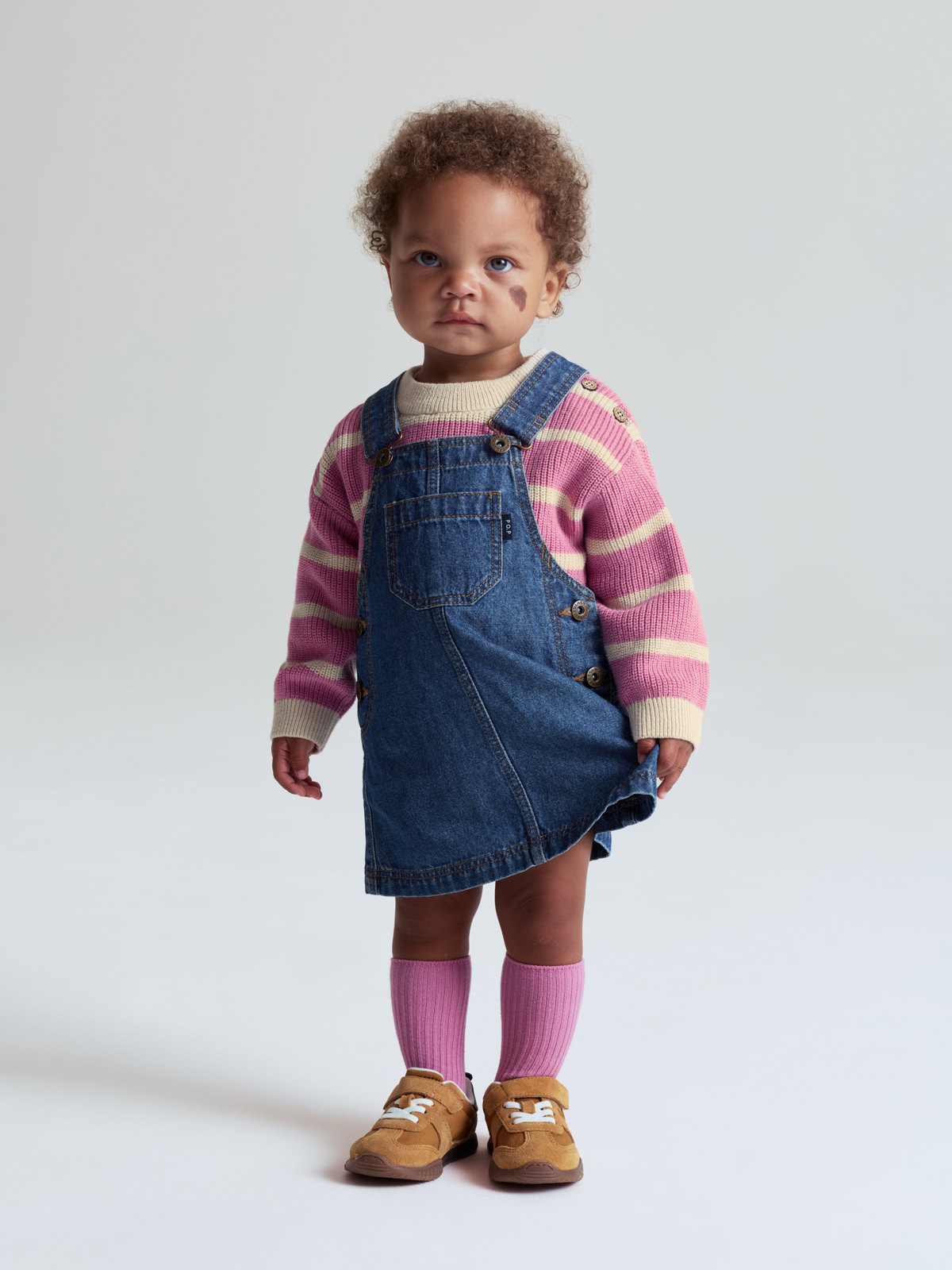 Selekjole i myk og lett denim – en ekte høstfavoritt! Kjolen har justerbare seler med spenner foran og knapper i sidene for enkel av- og påkledning. Den har også en brystlomme.