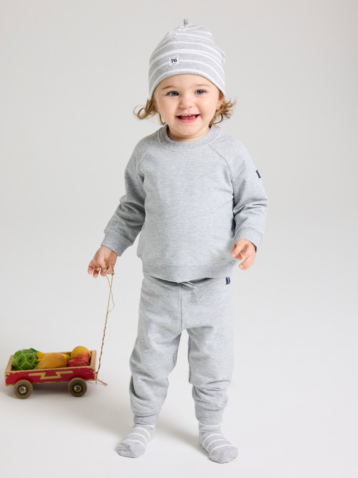 Genser i 100 % økologisk bomull med myk collegekvalitet til baby. Et perfekt plagg for alle anledninger!