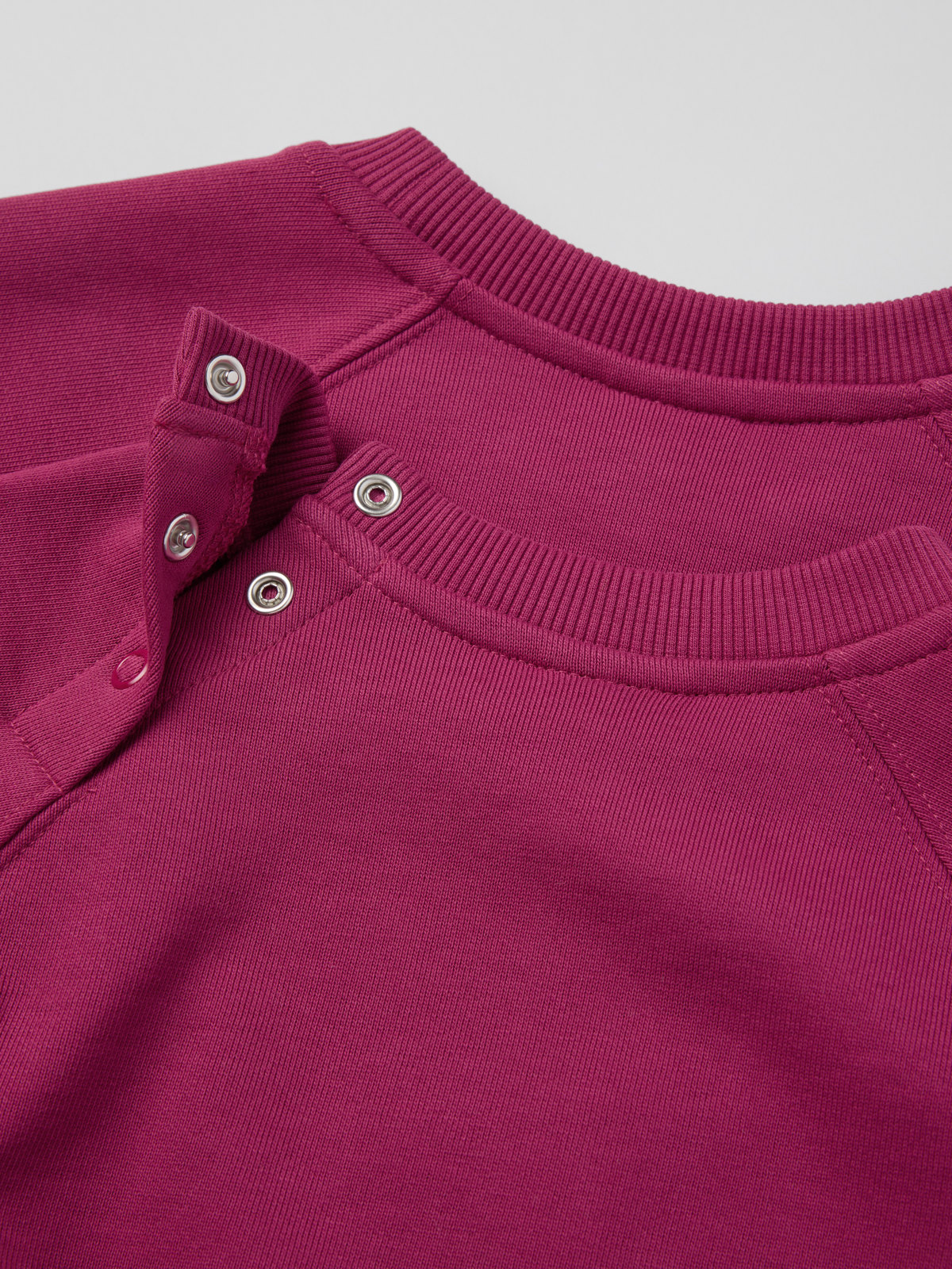 Størrelsene 86–92 har trykknapper bak på den ene skulderen for enklere klesskift.