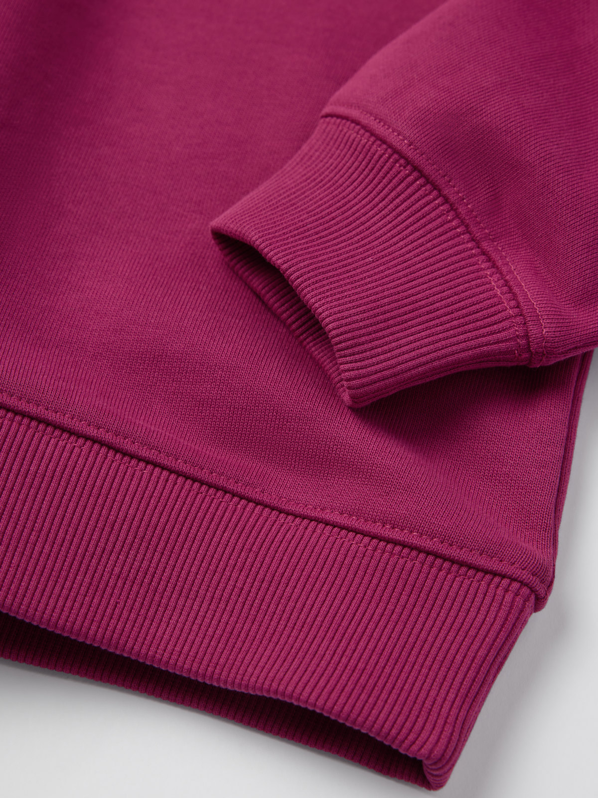 Genser i 100 % økologisk bomull med myk collegekvalitet. Et perfekt plagg for alle anledninger! Genseren har ribbestrikket vrangbord i halsutringningen og nederst på ermene.