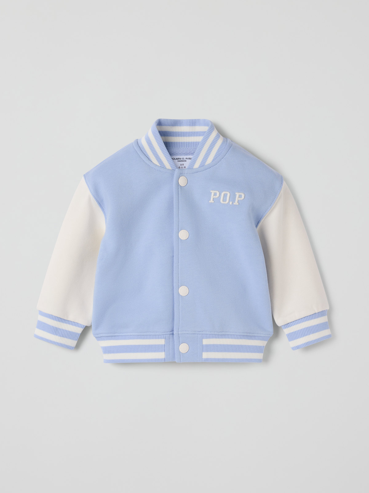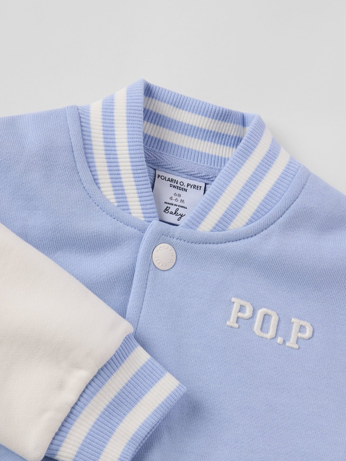 Myk collegejakke med børstet innside til baby – perfekt for vår og sommer! Jakken er laget av økologisk bomull og har ribbestrikkede mansjetter og nederkant for en behagelig passform. To lommer i siden og knepping foran.
