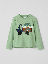 Tynn og behagelig genser i myk økologisk bomullstrikot – en favoritt å elske lenge! Genseren har et stort lekent trykk med en lastebil med broderte detaljer.