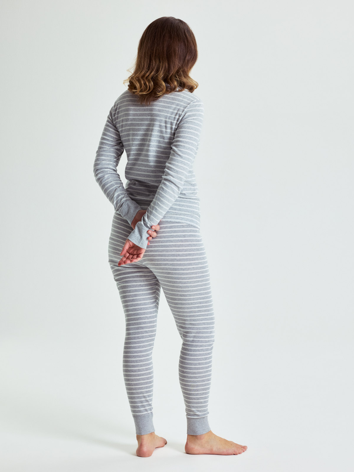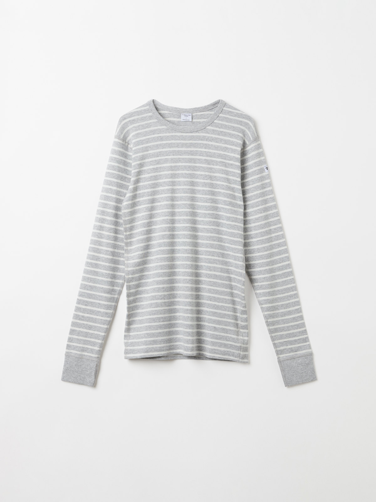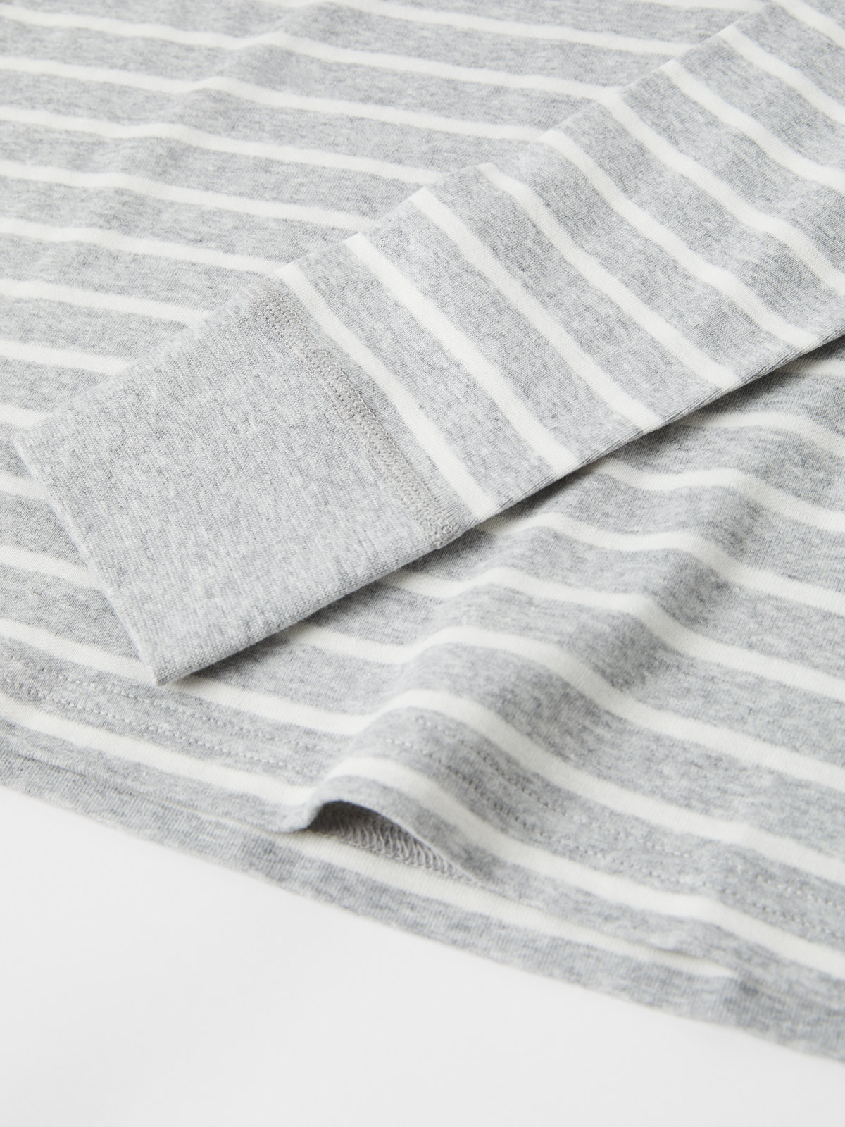 Stripet genser i 100 % økologisk bomull. Genseren har våre klassiske striper og myk ribbestrikket vrangbord nederst på ermene.