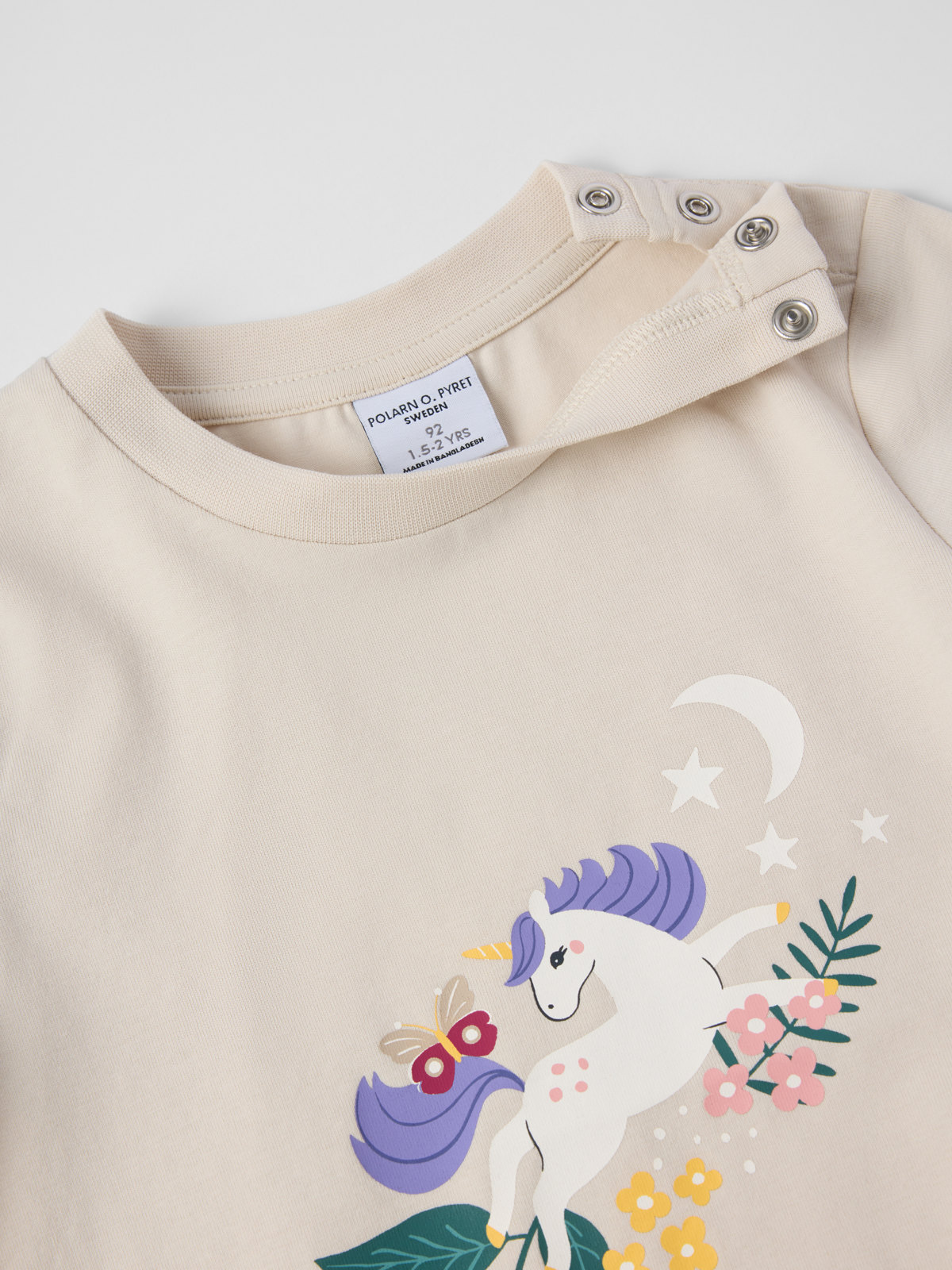Tynn og behagelig genser i myk økologisk bomullstrikot – en favoritt å elske lenge! Genseren har et stort trykk med en enhjørning på forsiden.