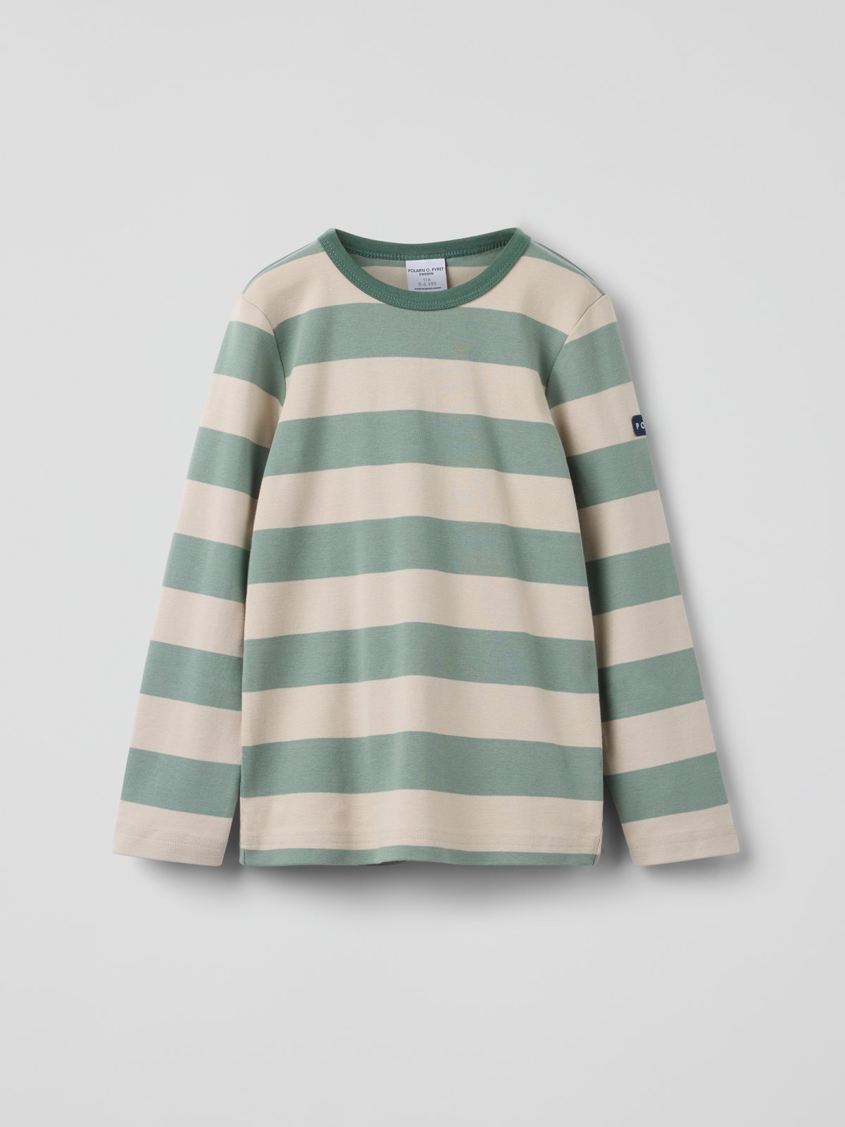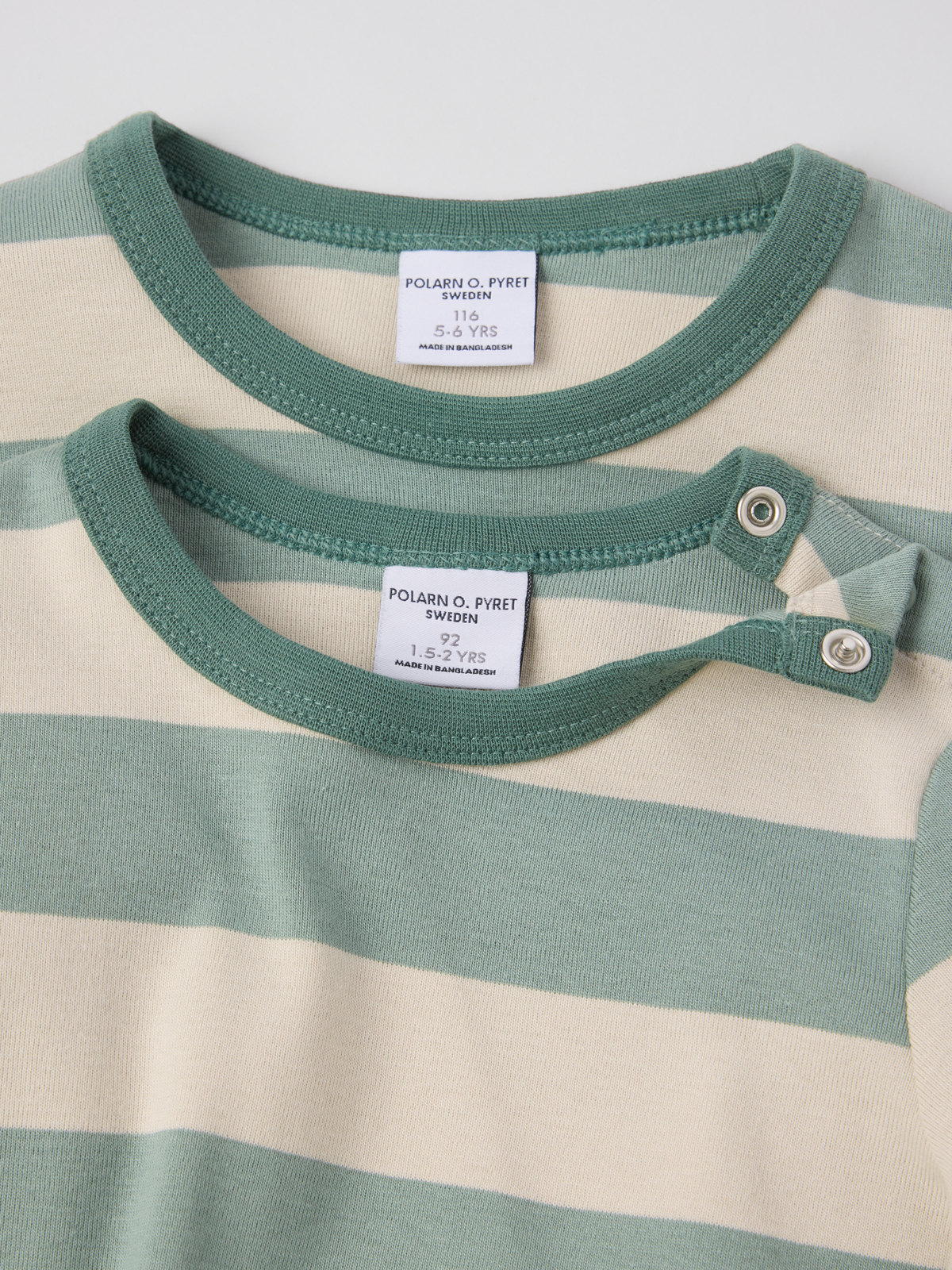 Stripet, ribbestrikket genser i 100 % økologisk bomullstrikot – en favoritt å elske lenge!