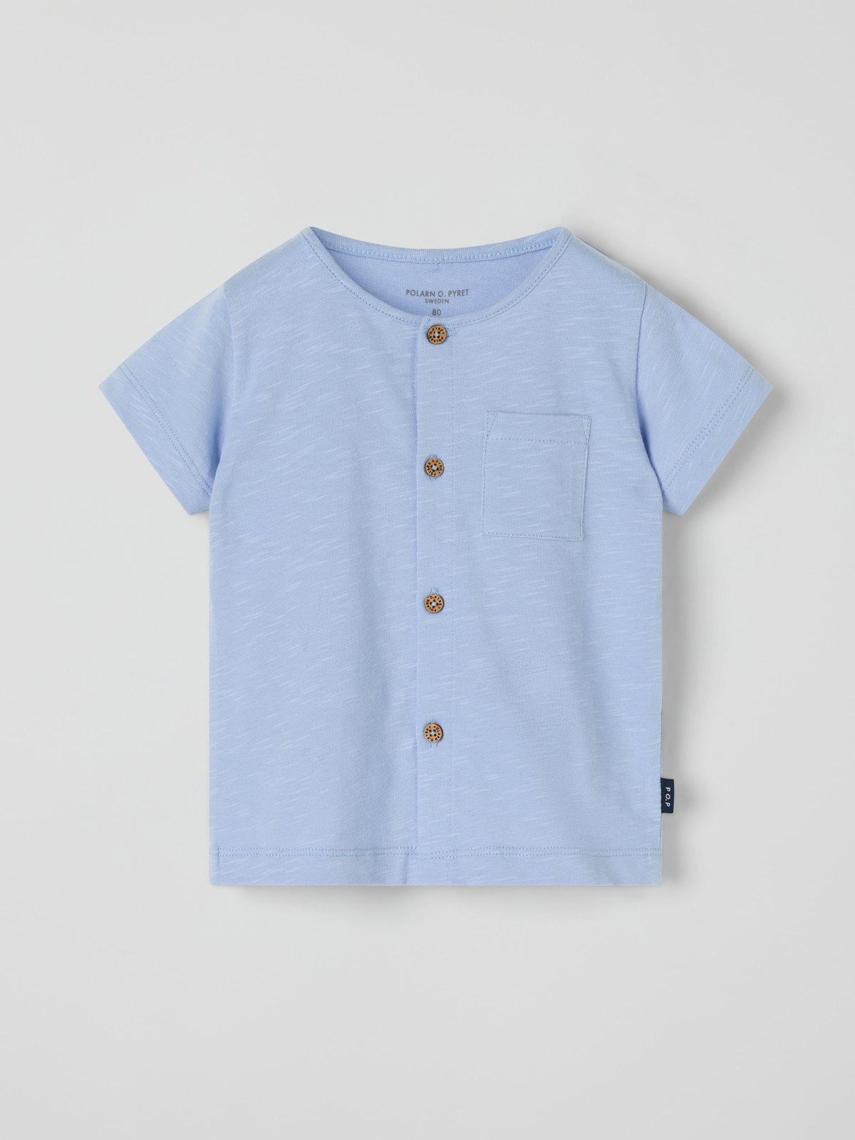Sett med skjorte og shorts i lett og mykt slubmateriale av 100 % økologisk bomull til baby – perfekte hverdagsplagg til sommergarderoben! Skjorten lukkes med knappestolpe foran og shortsen har behagelig, elastisk midje.