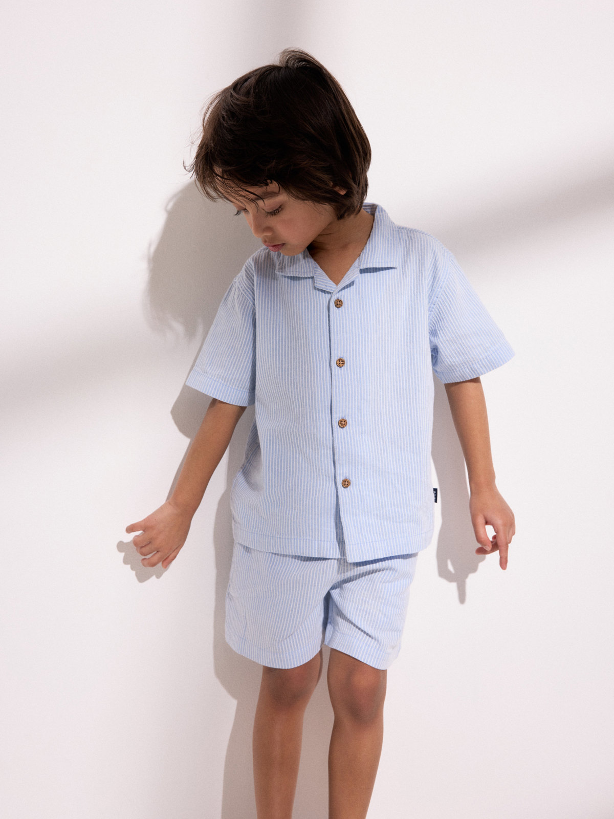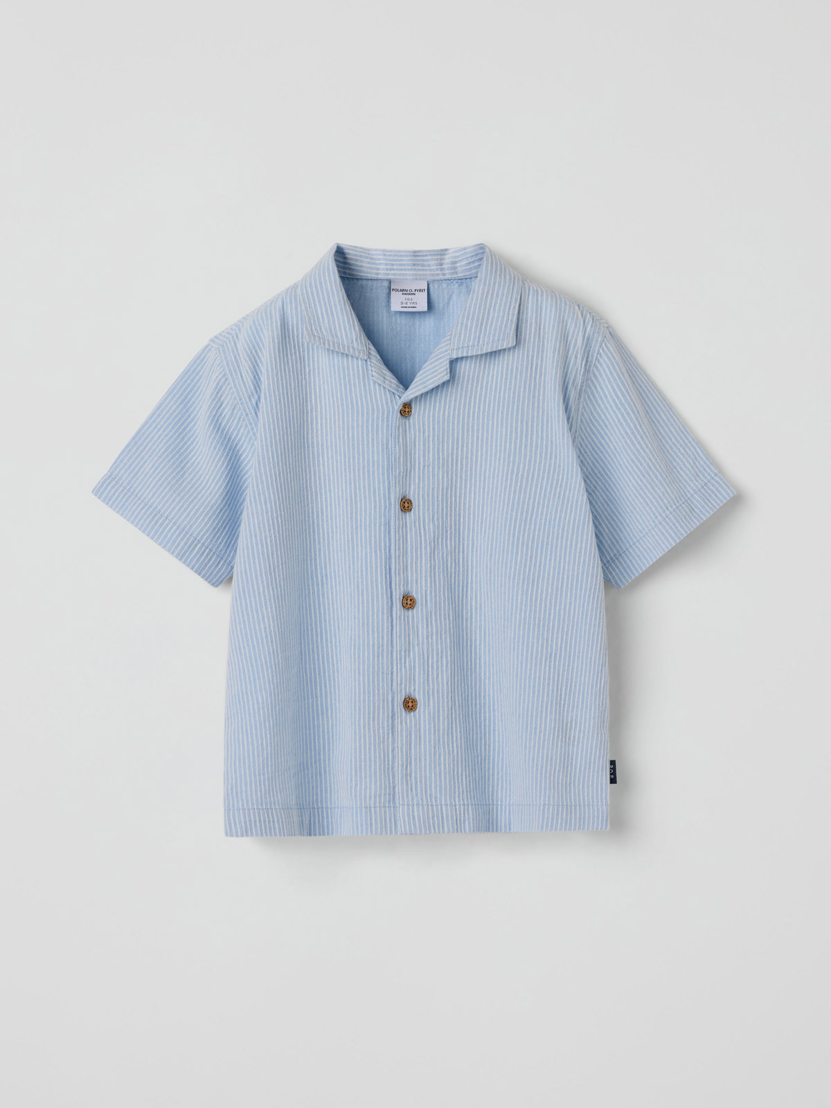 Stripete skjorte i vevd økologisk bomull – et perfekt hverdagsplagg til sommergarderoben! Skjorten lukkes med knappestolpe foran.