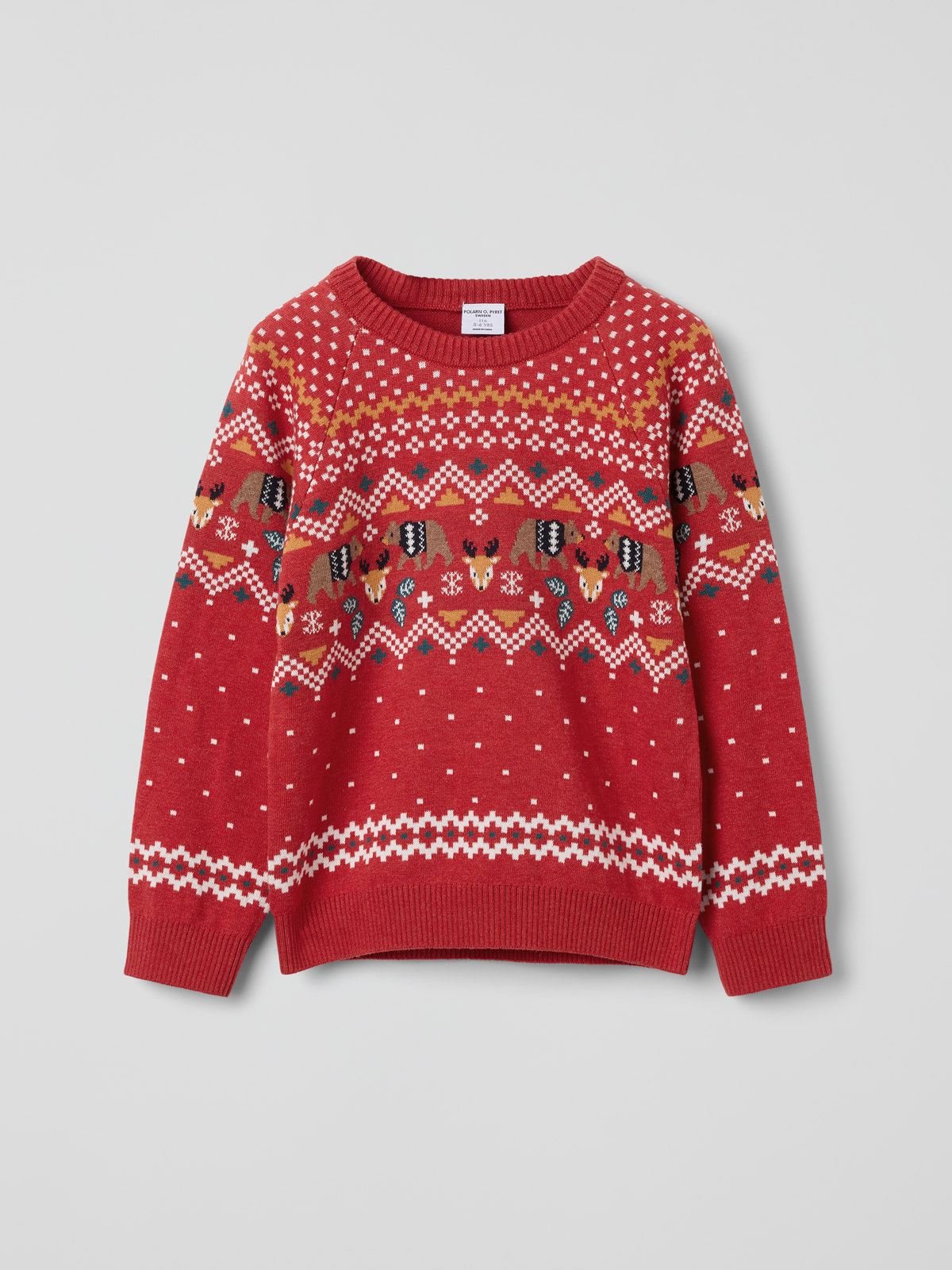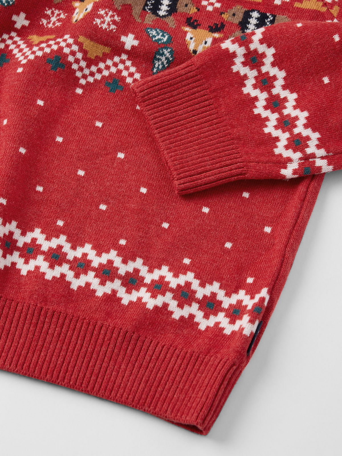 Tykt strikket genser i 100 % økologisk bomull – skikkelig varm og myk i kulden! Genseren har et fint julemønster. Ribbestrikkede kanter i halsen, ermer og nederkant gir en god passform.