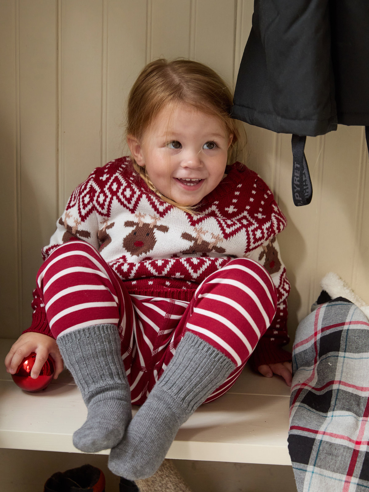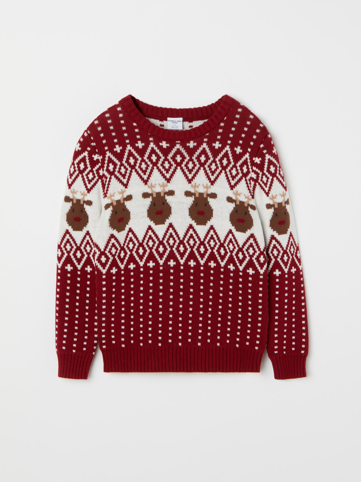 Jaquardstrikket genser i 100 % økologisk bomull med fint vinterinspirert mønster. Den ultimate julegenseren!