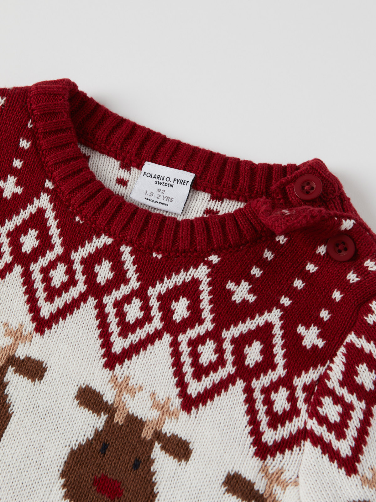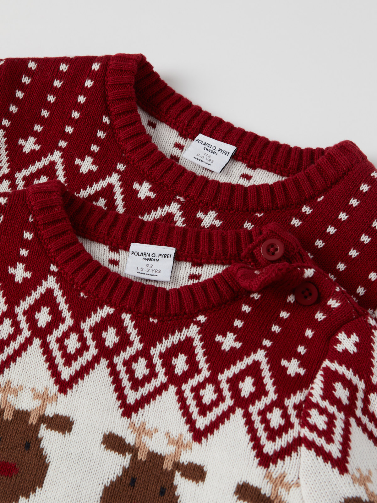 Størrelsene 86-92 har knapper på den ene skulderen for enklere klesskift.