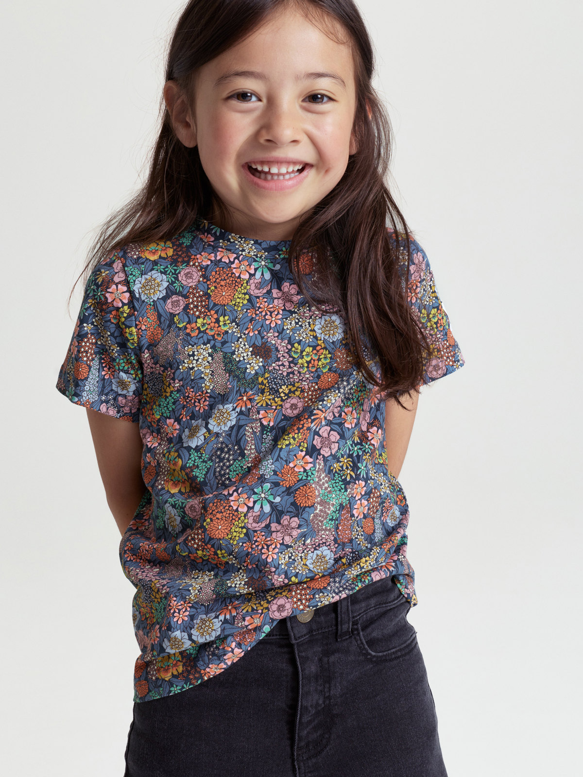 T-skjorte i myk, økologisk bomullsjersey – en del av vårt eksklusive designsamarbeid med Liberty Fabrics. T-skjorten har heldekkende mønster med ett av Liberty Fabrics’ ikoniske blomsterprints og finnes i en begrenset opplag.