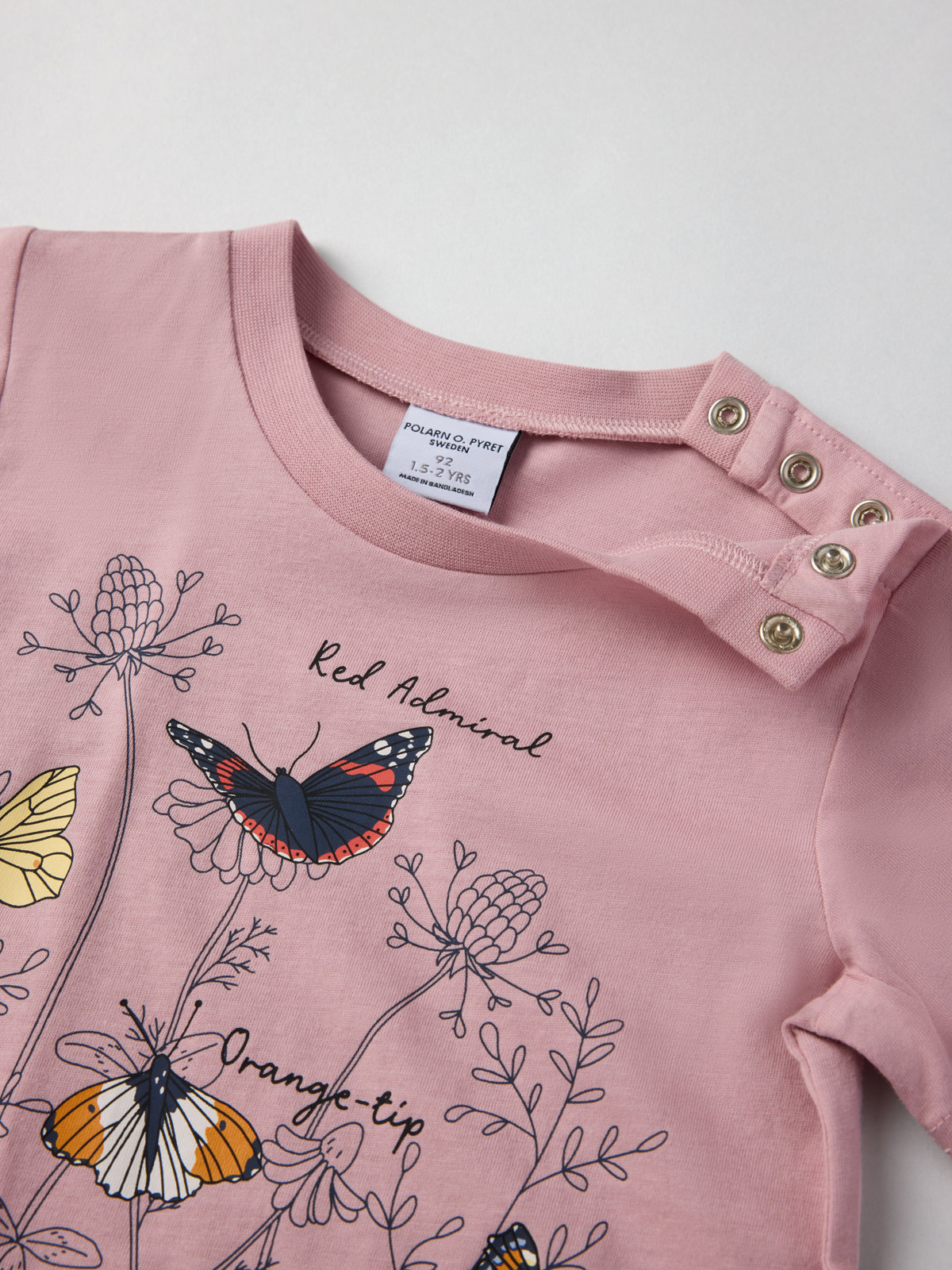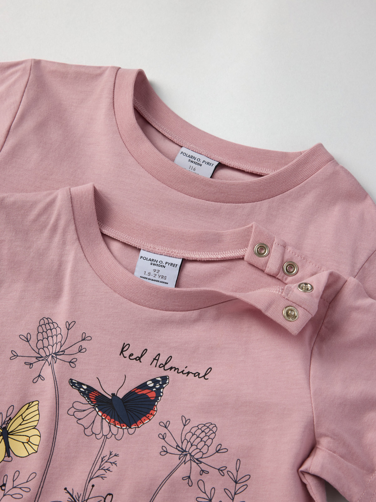 T-skjorte i 100 % økologisk bomull med festlig trykk på brystet. Passer perfekt til alle anledninger! T-skjorten finnes i flere farger og trykk som matcher fint med hele kolleksjonen.