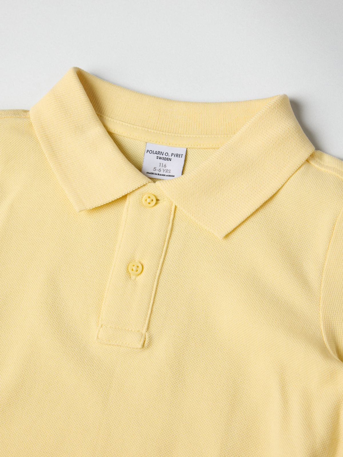 Ensfarget pikétrøye i 100 % økologisk bomull. Et perfekt basisplagg i barnegarderoben som passer til både hverdag og fest! Trøyen har ribbestrikket vrangbord nederst på ermene og myk krage med knappestolpe foran.