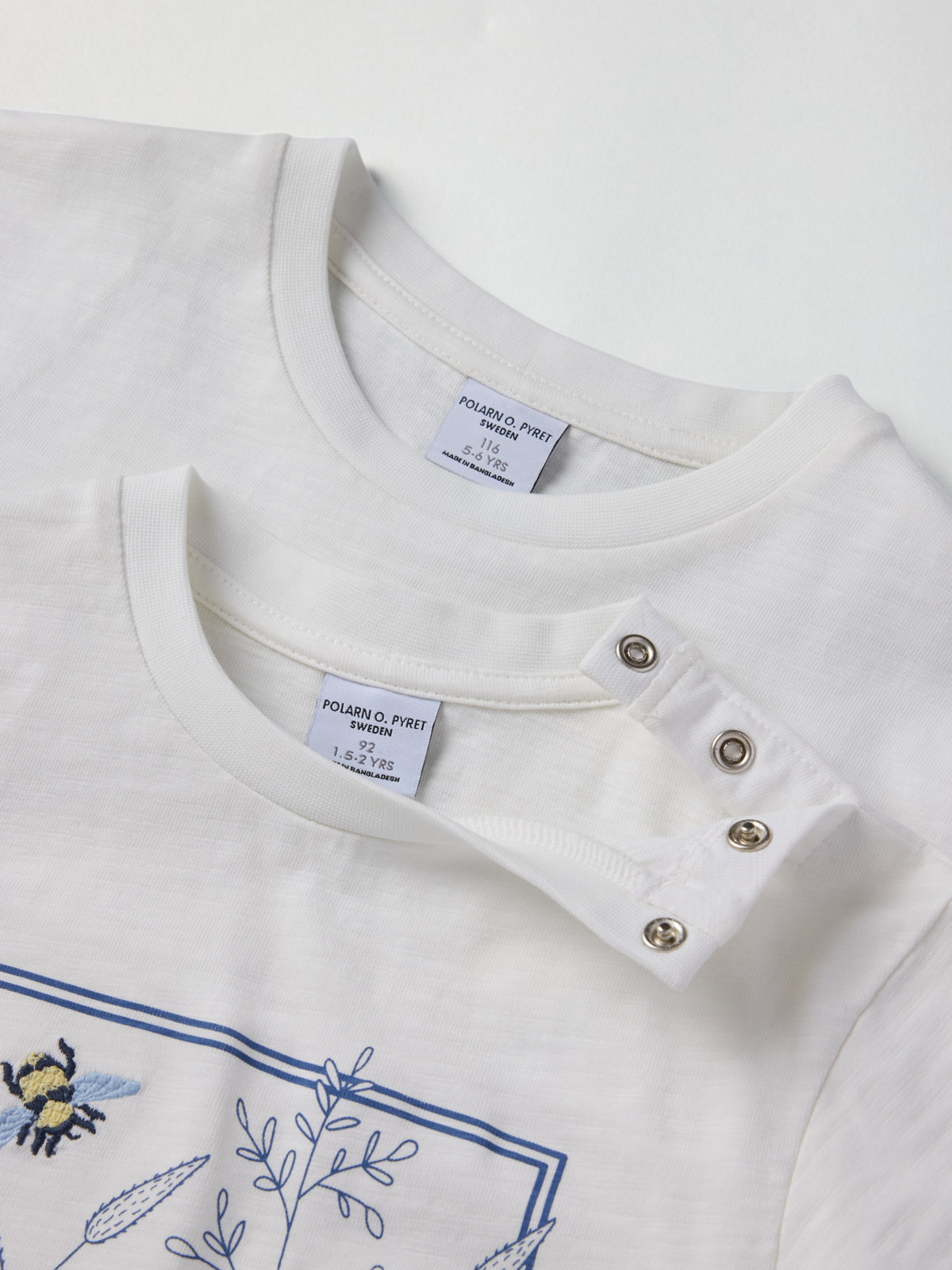 T-skjorte i mykt og behagelig slubmateriale av 100 % økologisk bomull – en utrolig deilig sommerfavoritt! Genseren har vid passform og et dekorativt broderi på forstykket.