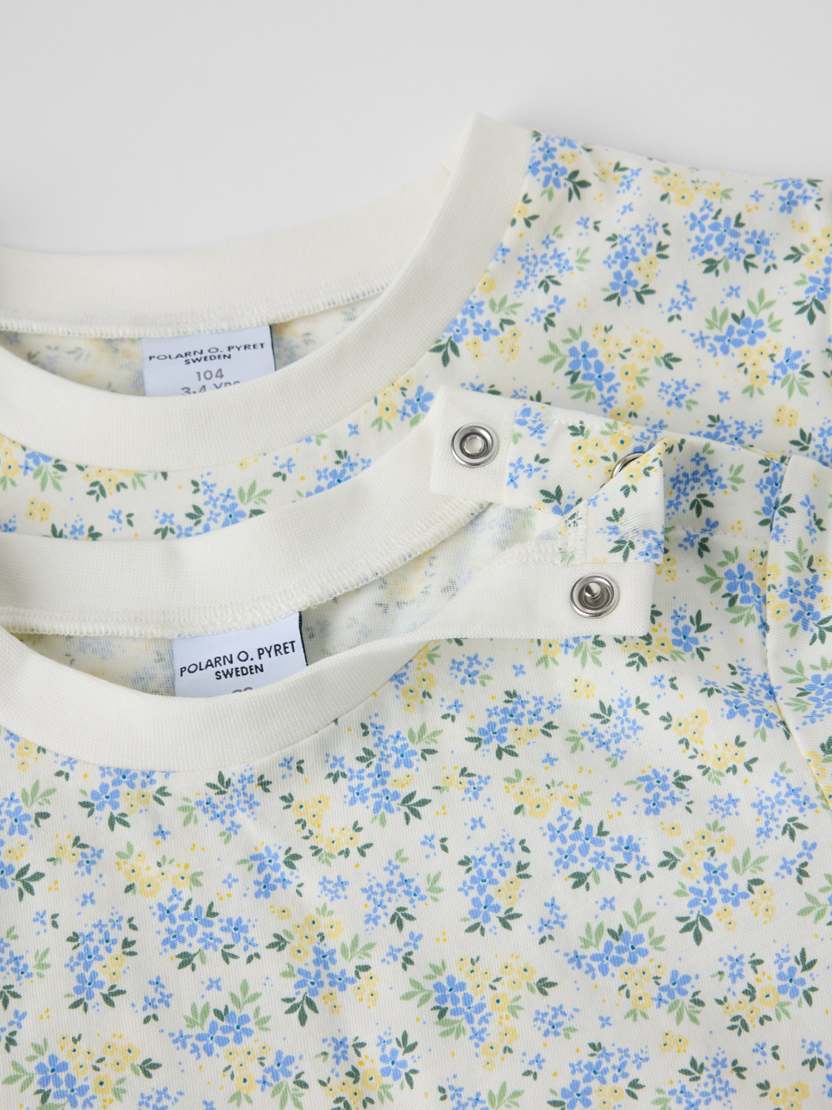 Størrelsene 86–92 har trykknapper på den ene skulderen for enklere klesskift.