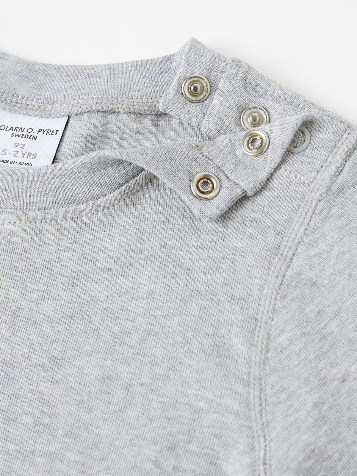 Størrelsene 74-92 har trykknapper på den ene skulderen for enklere klesskift.