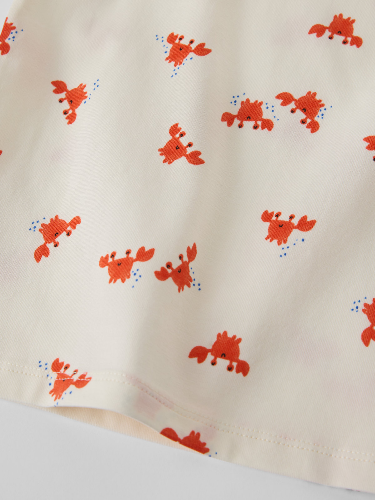 T-skjorte i myk økologisk bomull – et basisplagg du vil elske lenge! Heldekket av små krabber. Trykknapper på skulderen gjør det enkelt å kle på og av.