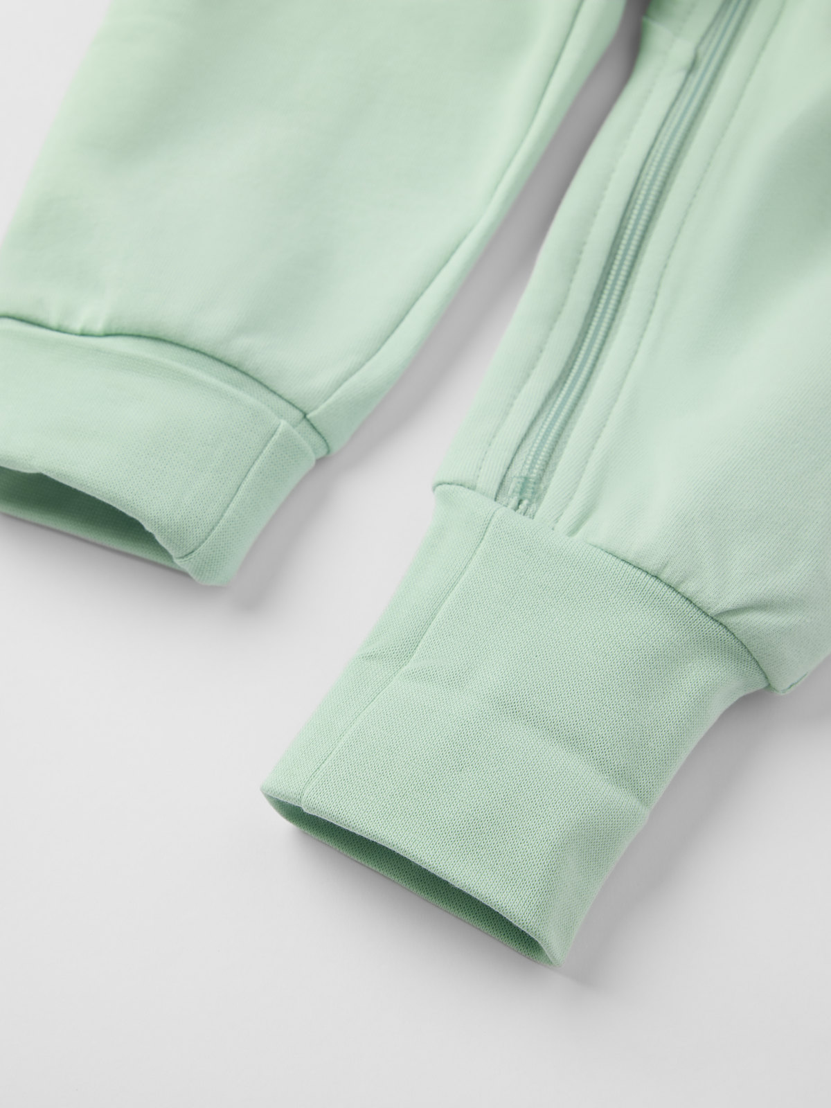 Myk dress i økologisk bomull til baby, med deilig collegekvalitet og børstet innside. Dressen har kengurulomme og fast hette som er fôret med myk bomullstrikot i våre klassiske striper. Den lange glidelåsen fra hals til nederst på bena forenkler av- og påkledning og har en beskyttelse øverst for å hindre at den gnager mot hake og kinn. Dressen har ekstra lange vrangboder nederst på ermene og bena, som kan brettes ned etter hvert som barnet vokser.