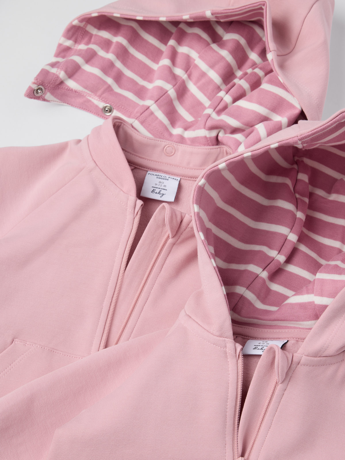 Størrelse 80-92 har avtakbar hette som kan festes med trykknapper.
