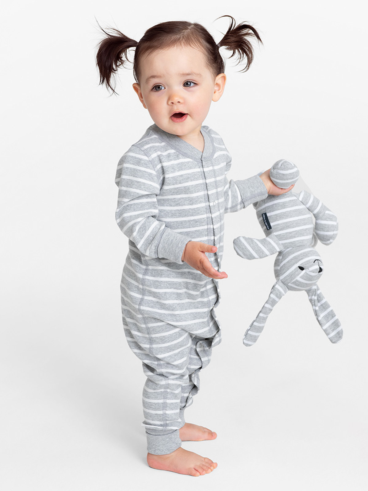 Stripet dress i 100 % økologisk bomull til de aller minste. Dressen har våre klassiske striper og trykknapper fra hals til nederst på bena som gjør den lett å ta på og av. Vrangbordene er ekstra lange og kan brettes ned etter hvert som barnet vokser.