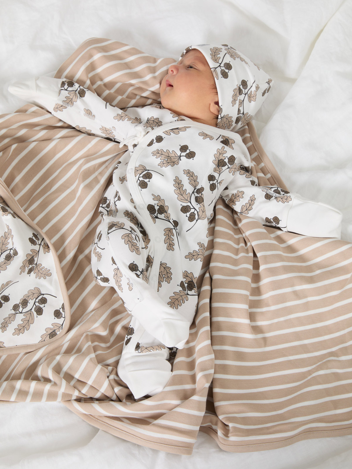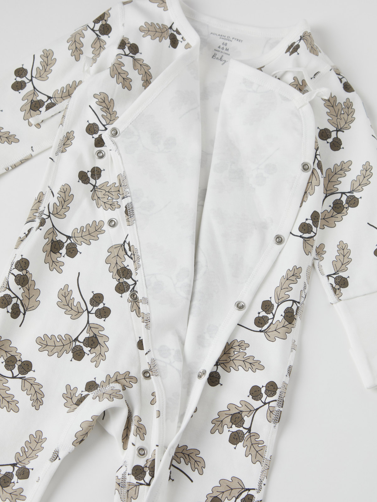 Dressen er helmønstret med eikekvister og har ekstra myke og flate sømmer som er skånsomme mot følsom hud.