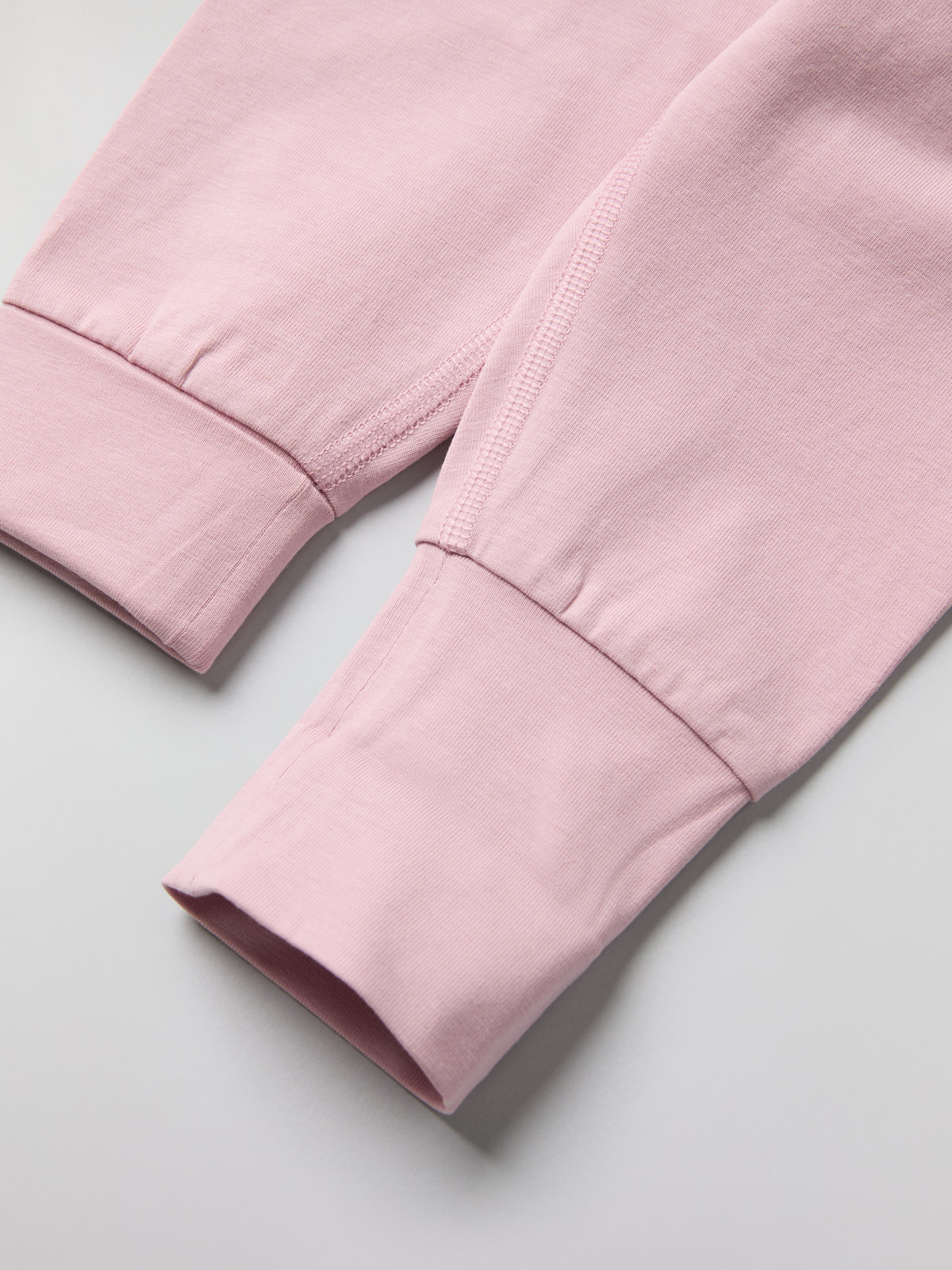 Myk og god bukse som kan vokse med babyen takket være den ekstra lange vrangborden i midjen og nederst på bena, som kan brettes opp eller ned.