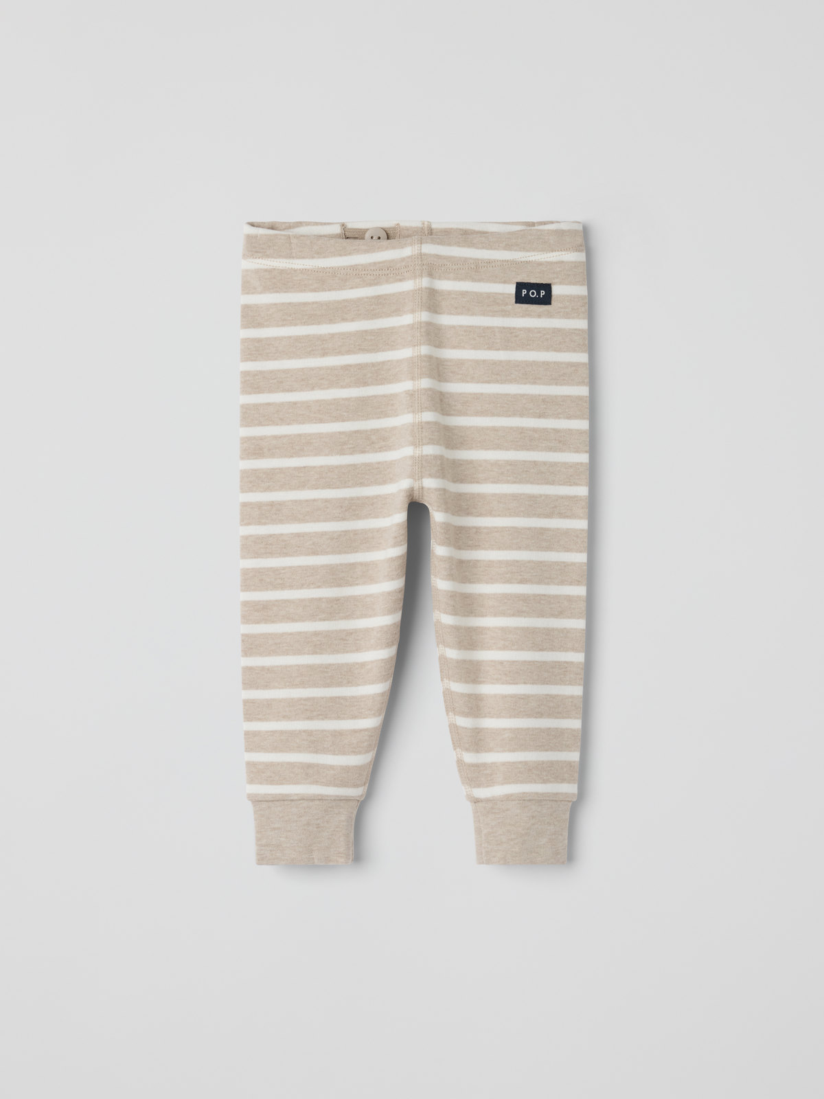 Vår klassiske stripete bukse i 100 % myk økologisk bomull – et elsket basisplagg som er en selvfølge i alles garderobe! Buksen har elastisk midje som kan reguleres på innsiden med knapphullsstrikk. Den har også myk vrangbord nederst på bena.