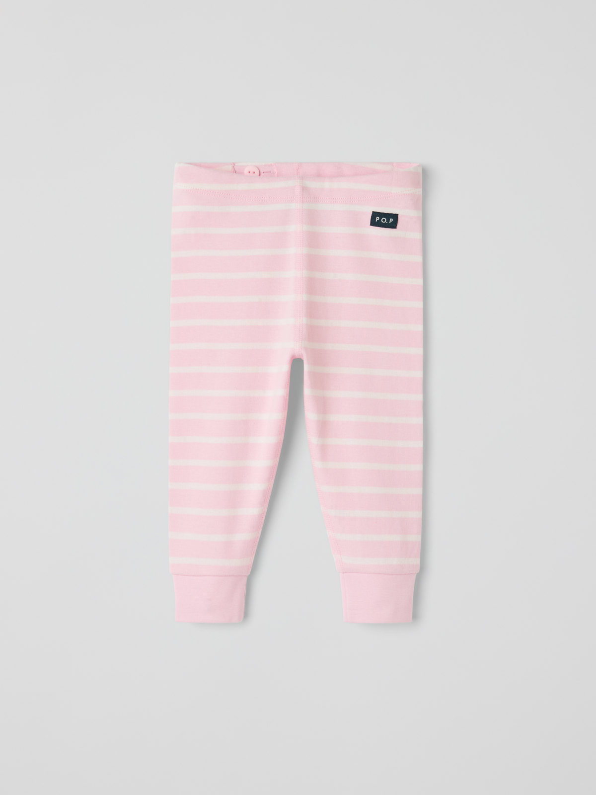 Vår klassiske stripete bukse i 100 % myk økologisk bomull – et elsket basisplagg som er en selvfølge i alles garderobe! Buksen har elastisk midje som kan reguleres på innsiden med knapphullsstrikk. Den har også myk vrangbord nederst på bena.