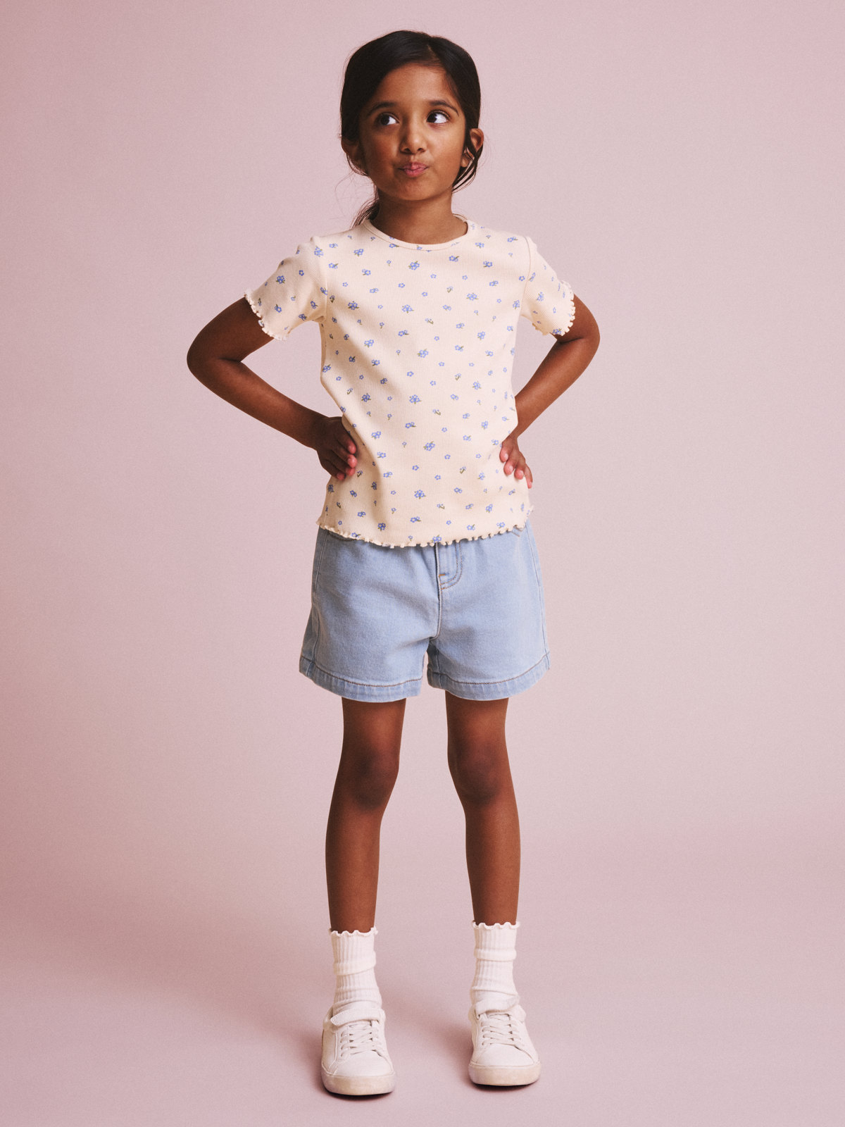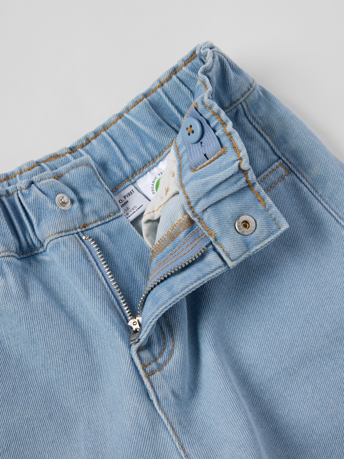 Jeansshorts i myk og smidig denim av økologisk bomull – en sommerfavoritt i alle barns garderobe! Shortsen har behagelig passform og midje som enkelt kan justeres med knapphullsstrikk. Siden våren 2022 er alle våre jeans laget av GOTS-sertifisert bomull!