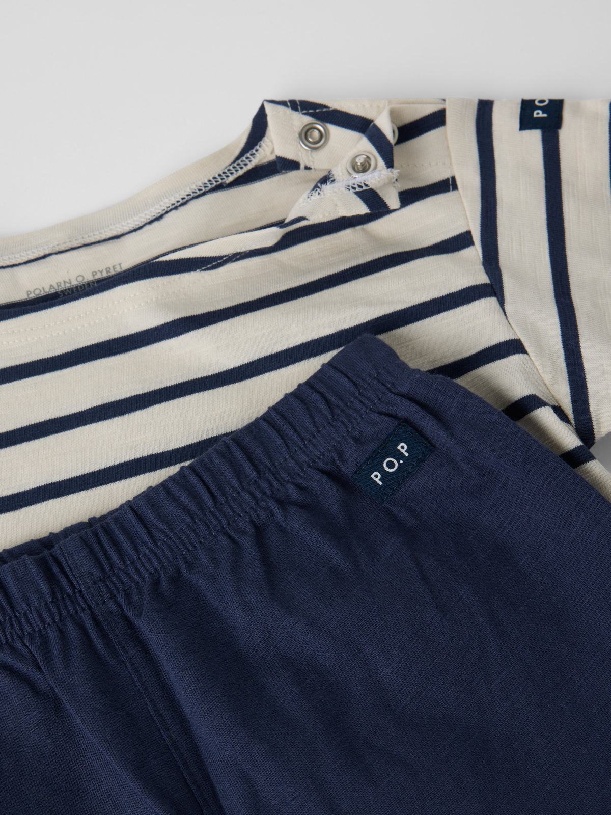 Sett med langermet body og shorts i 100 % tynn økologisk bomull til baby – perfekt på varme dager, gir lett beskyttelse mot solen og holder barnet svalt og komfortabelt. Bodyen har trykknapper på begge skuldre og i skrittet for enklere klesskift. Shortsen har elastisk midje for god passform.