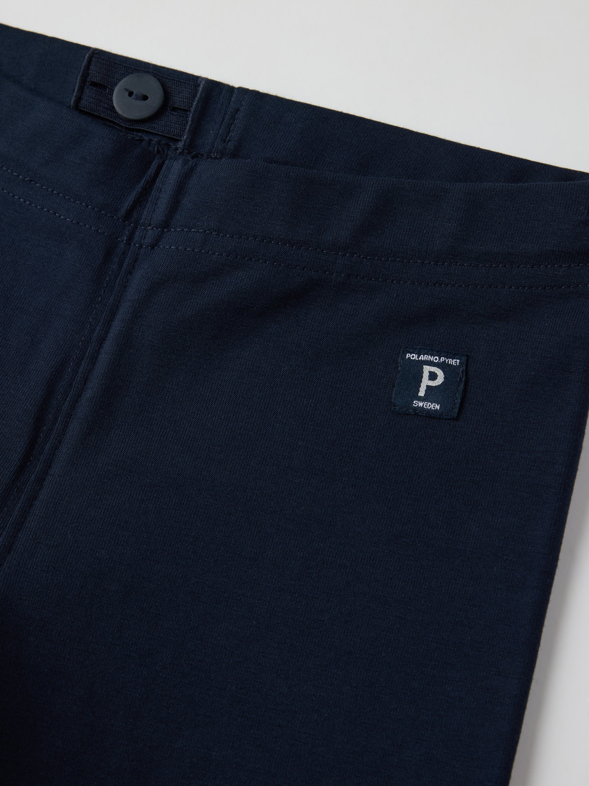 Ensfarget sykkelbukse i myk økologisk bomull – den perfekte sommershortsen! Midjen er elastisk og kan reguleres på innsiden med knapphullsstrikk. Shortsen finnes i flere farger som matcher fint med hele kolleksjonen.