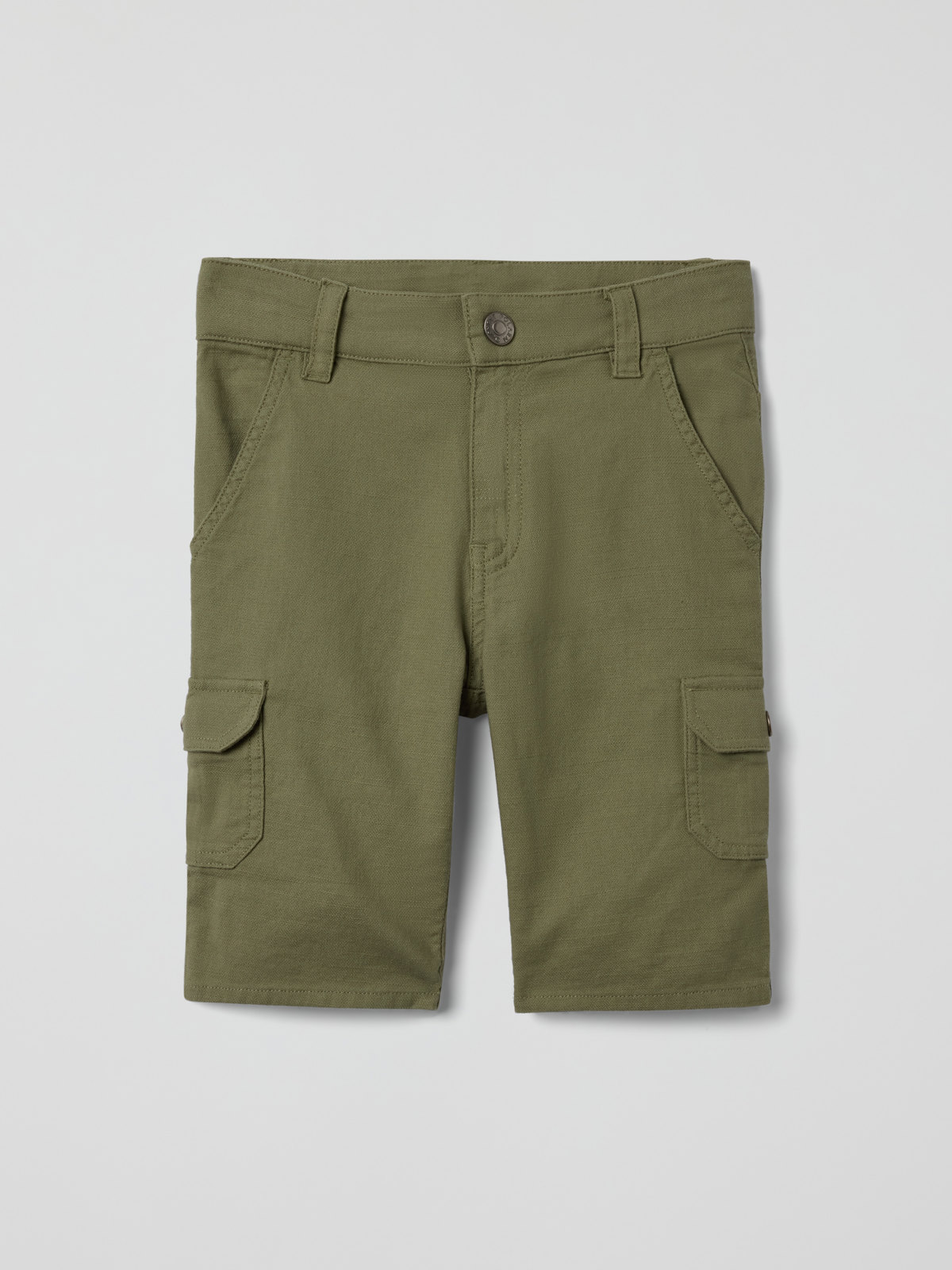 Myk cargoshorts i 100 % økologisk bomull – perfekt for herlige sommereventyr! Shortsen har formsydde knær for behagelig passform og oppbrett nederst på bena. Shortsen har lommer foran og bak, samt to lommer på bena som lukkes med trykknapp.