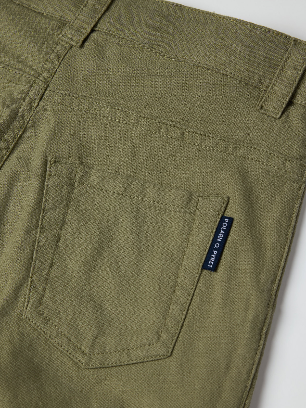 Midjen kan justeres med knapphullsstrikk.