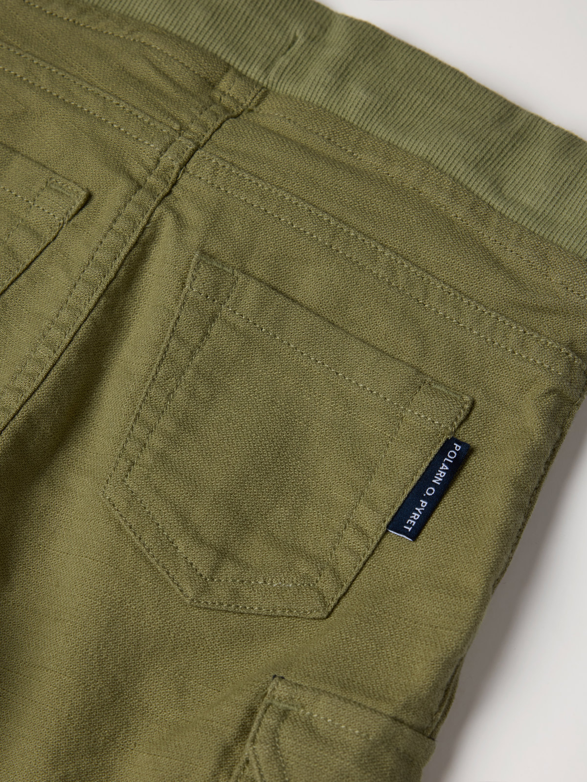 Størrelsene 86-92 har myk ribbestrikket vrangbord i midjen for ekstra komfort.