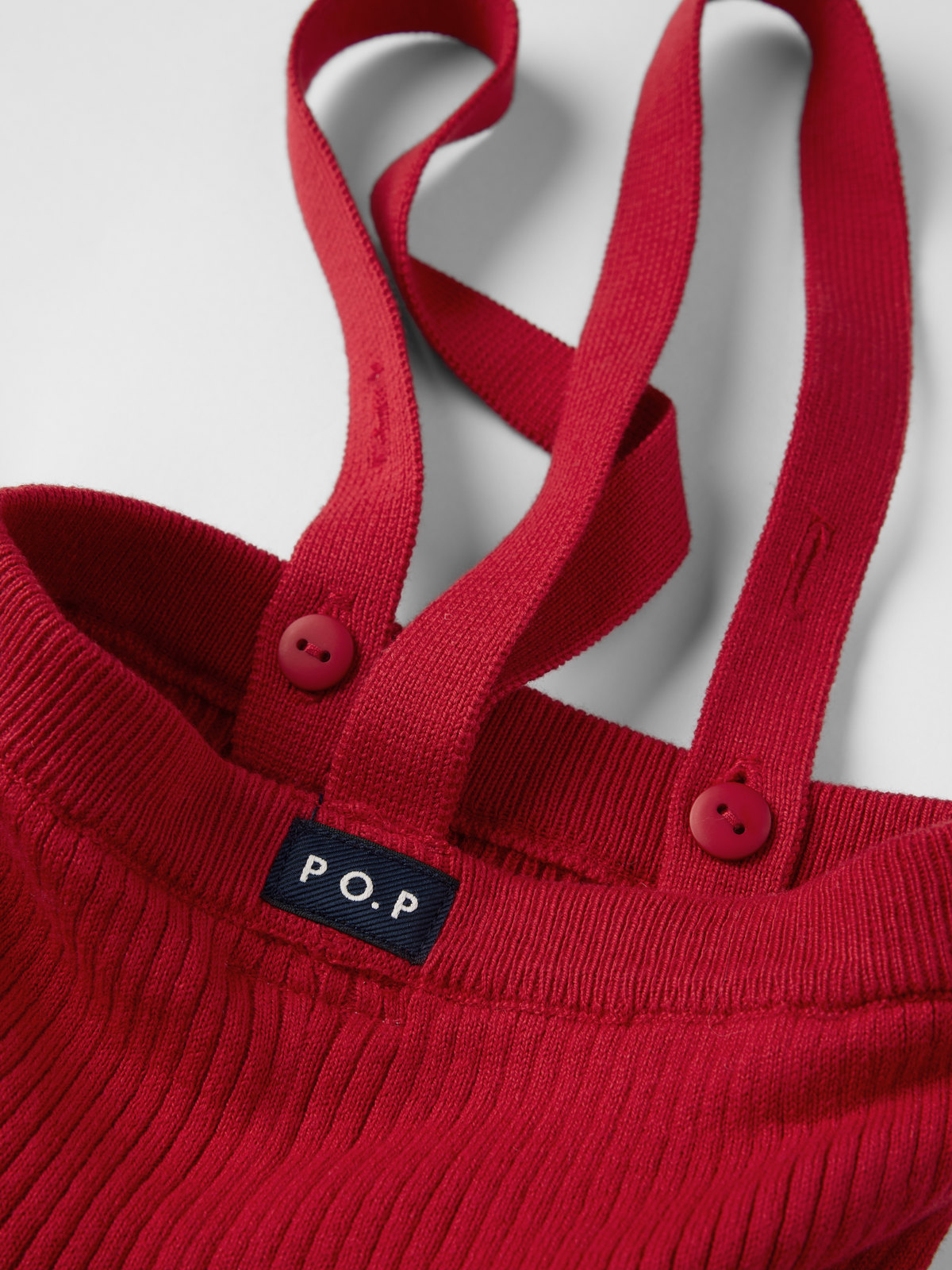 Finstrikket selebukse i 100 % økologisk bomull. Passer like godt til kos som til fest! Lengden på selene kan justeres med knapper. Midjen er ribbestrikket og har myk strikk for behagelig passform.