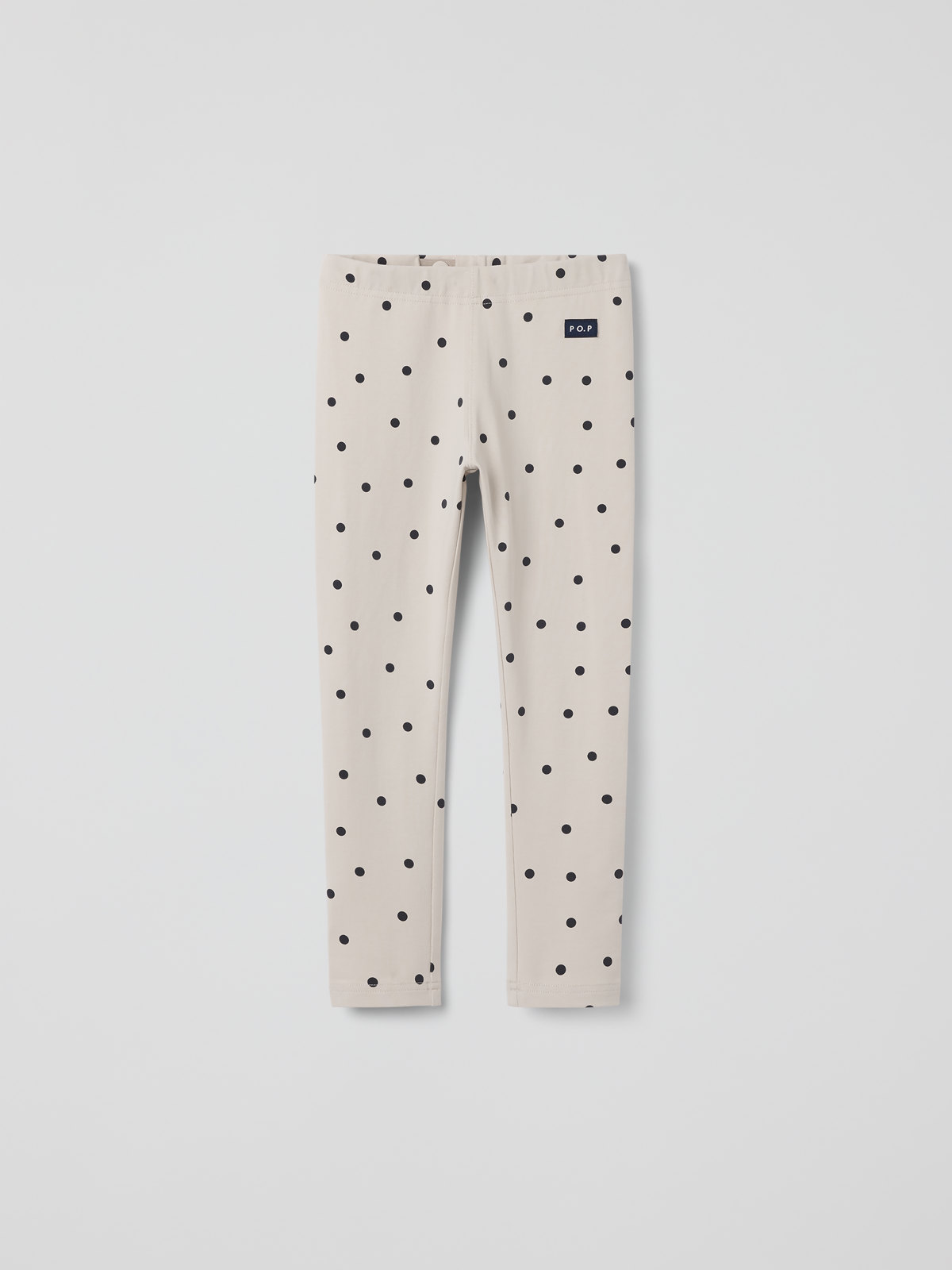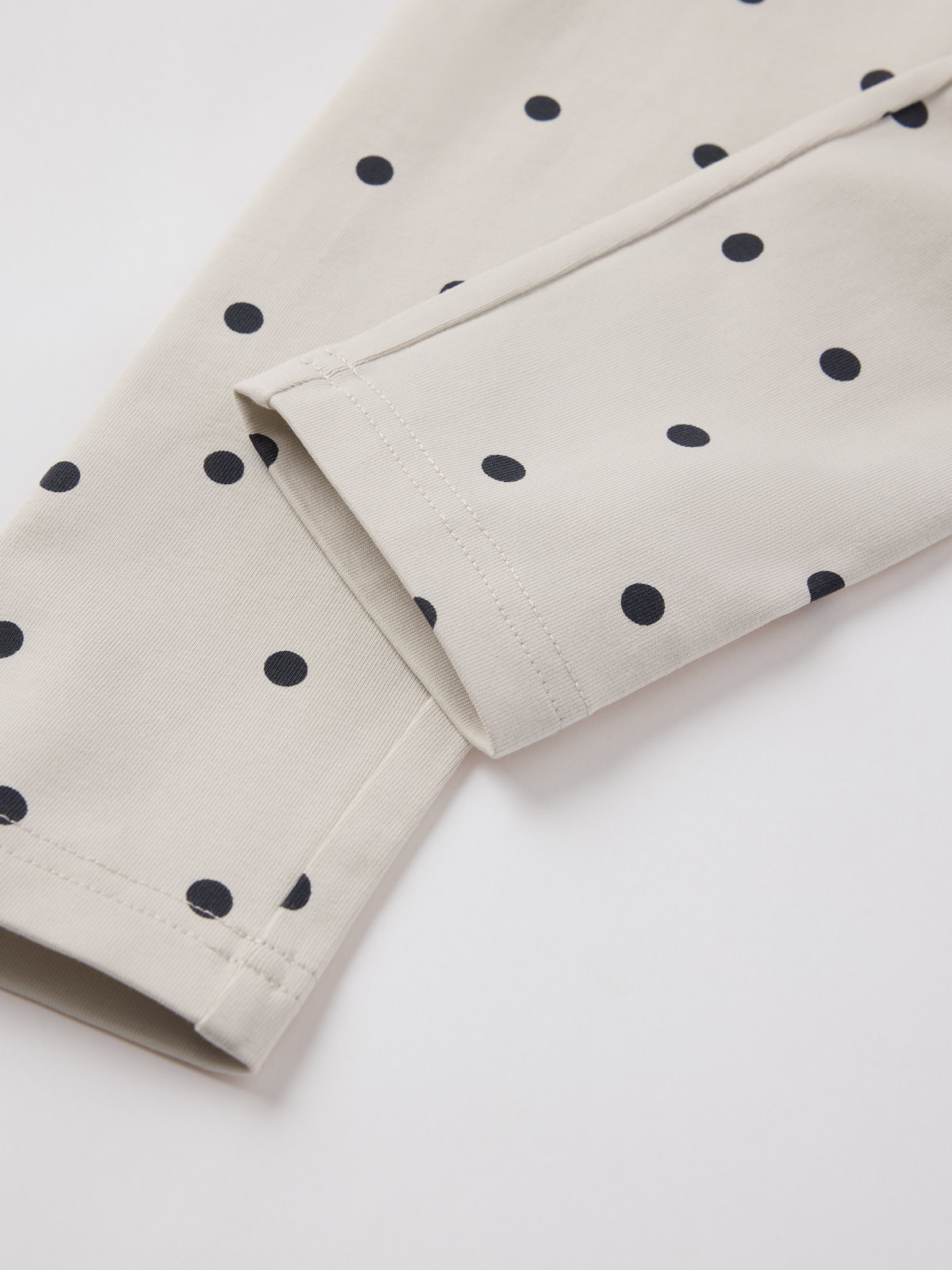 Prikkete leggings i myk økologisk bomullsjersey – en av våre mest populære produkter! Midjen kan reguleres med knapphullsstrikk.