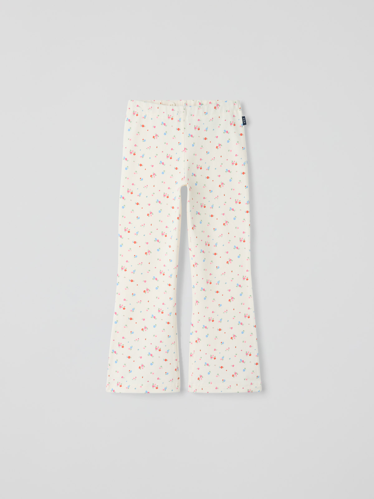 Våre klassiske leggings i myk, økologisk bomullsjersey – nå med utsvingte ben! Midjen kan enkelt justeres med knapphullsstrikk.