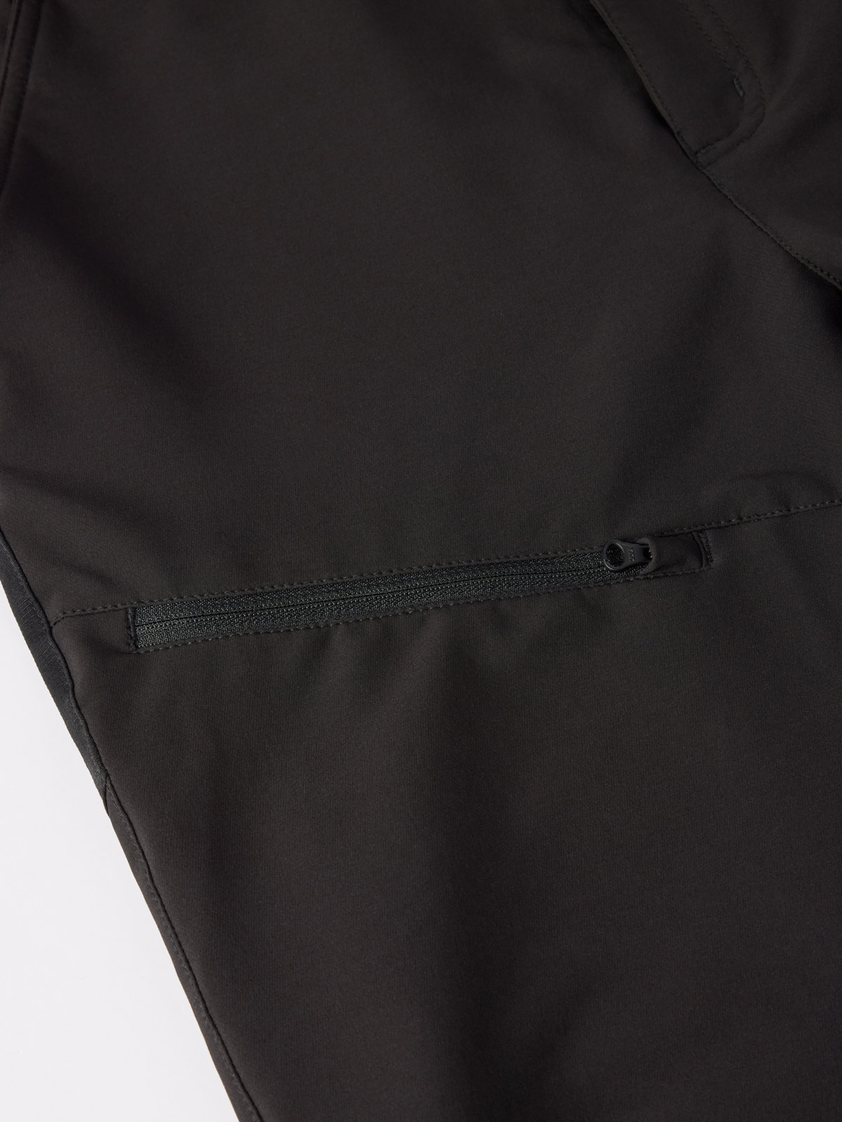 Buksen har to lommer foran og en lårlomme som lukkes med glidelås.