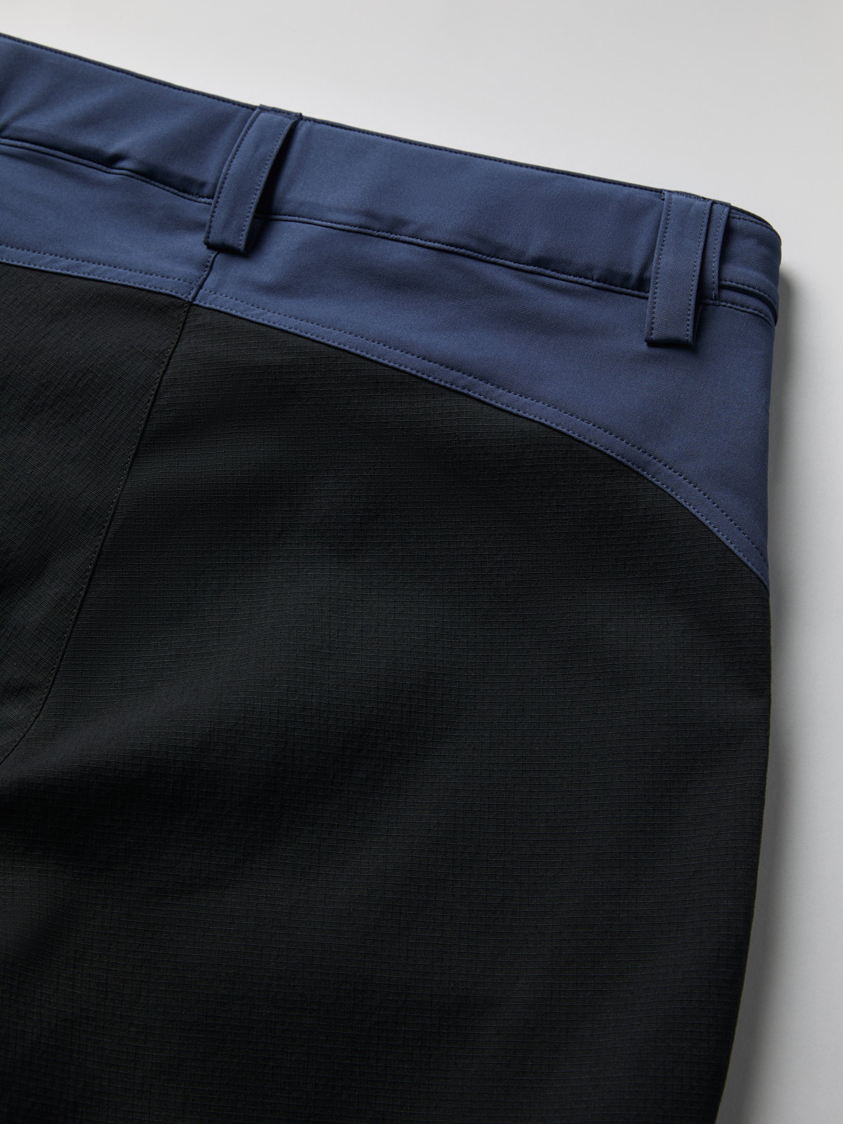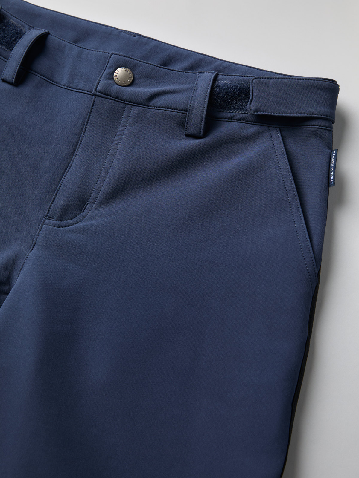 Justeres med borrelås nederst på bena og i midjen. Midjen har også beltehemper.