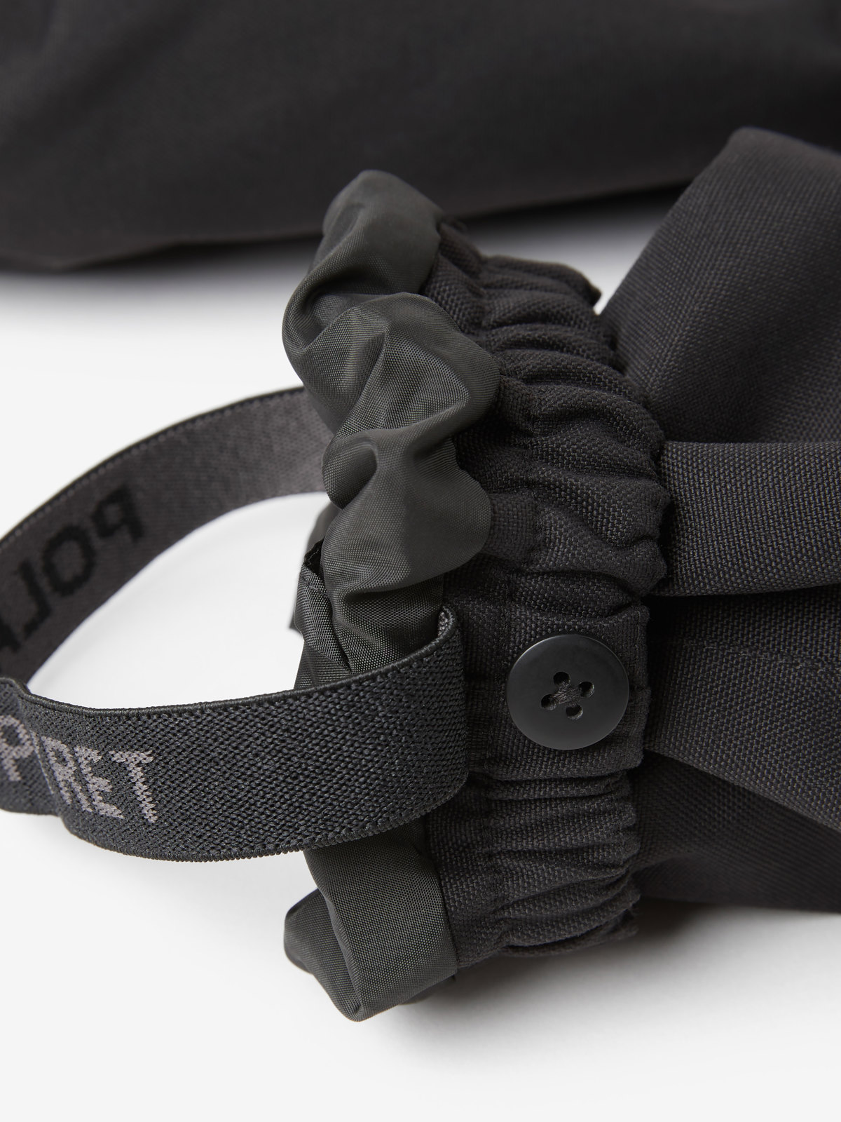 Den har avtagbare, justerbare seler, og midjen kan justeres med borrelås i siden. Buksen har dessuten formsydde knær og strikk nederst på bena for bedre bevegelighet og perfekt passform. Gylfen lukkes med trykknapp og glidelås. De utskiftbare fotstrikkene holder buksen på plass.