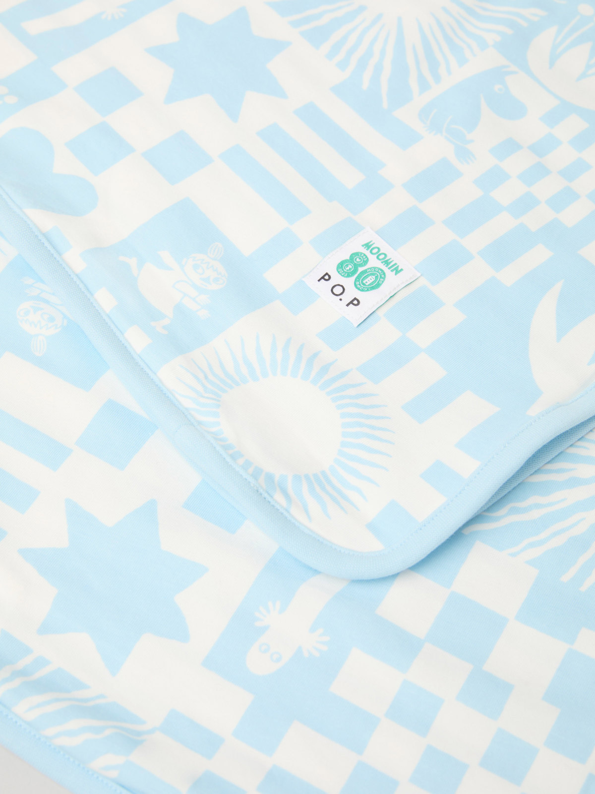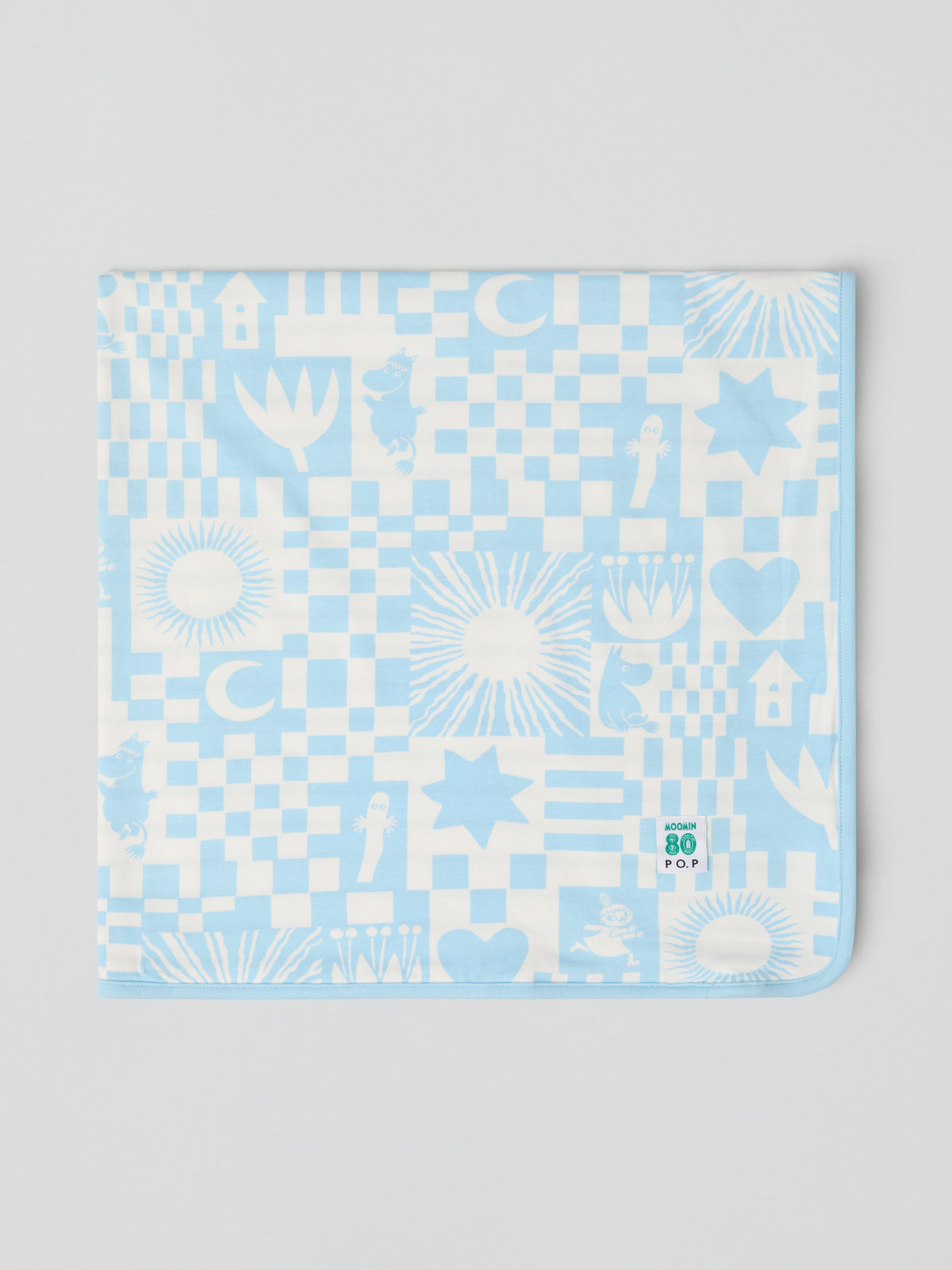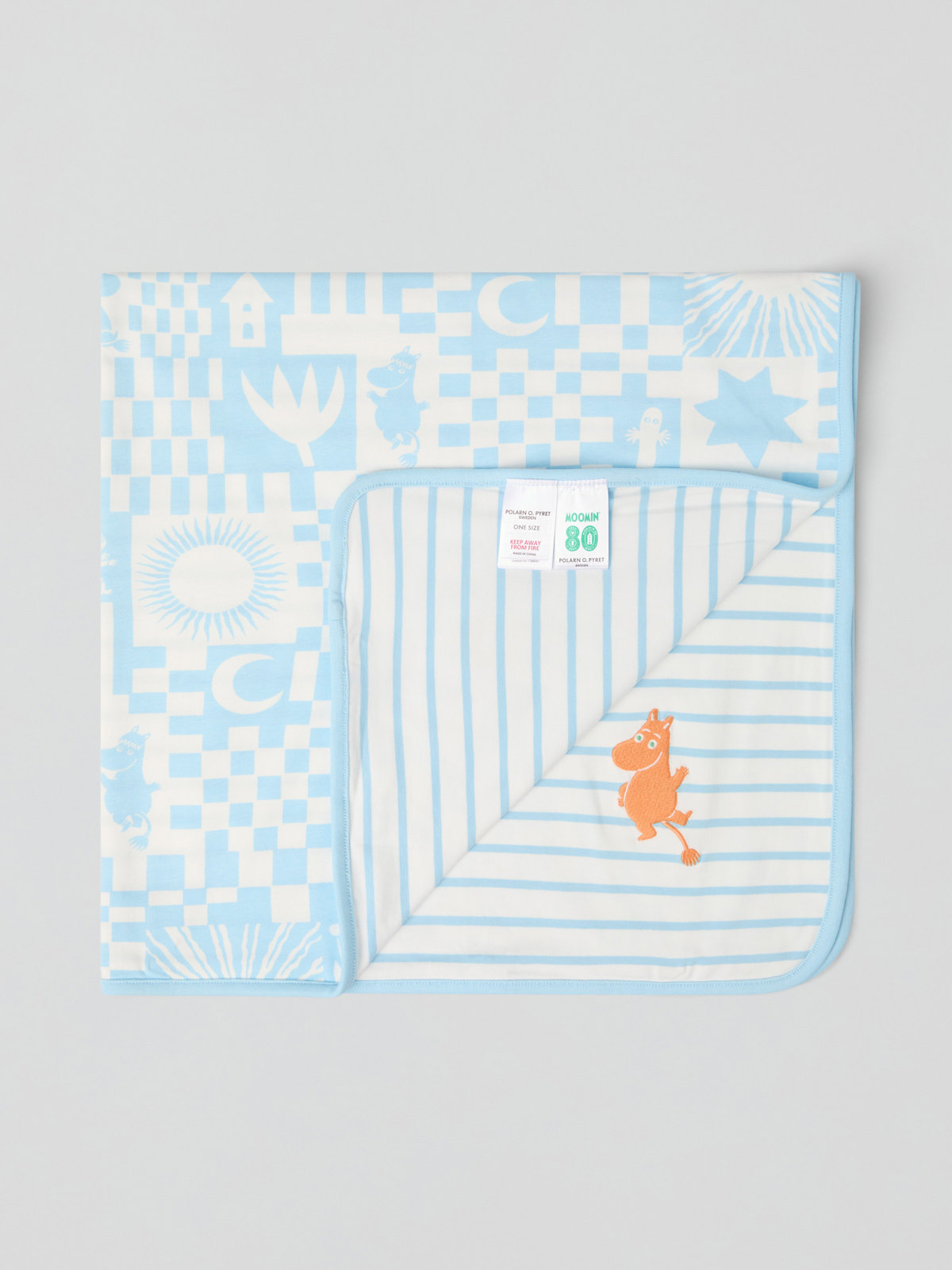 Mykt og deilig babyteppe i økologisk bomull med illustrasjoner fra Tove Janssons fortellinger om Mummitrollet. Perfekt i vognen eller hjemme.