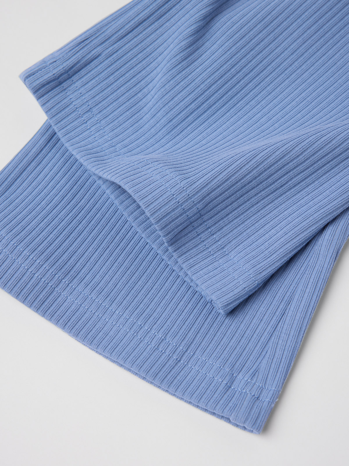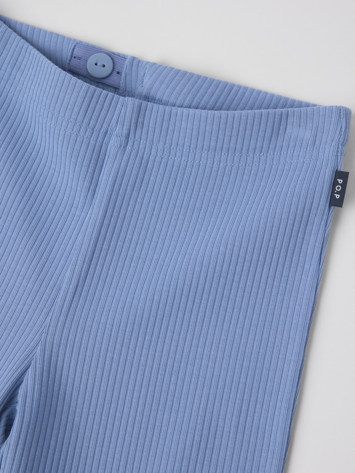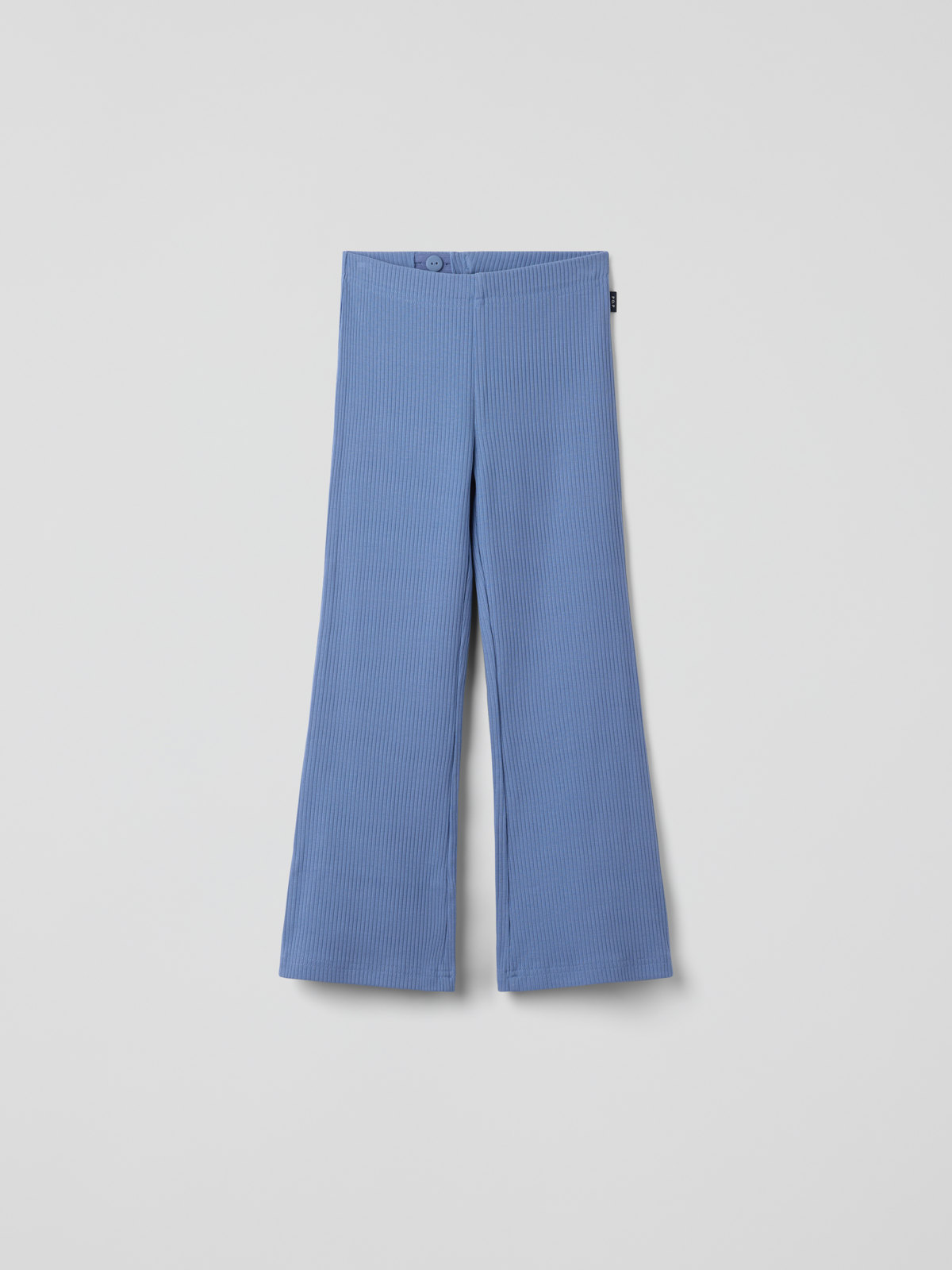 Ribbede leggings i 100 % økologisk bomull med utsvingte ben. Myke og lekevennlige favoritter, perfekte både til barnehagen og skolen. Buksen har justerbar midje med knapphullsstrikk.