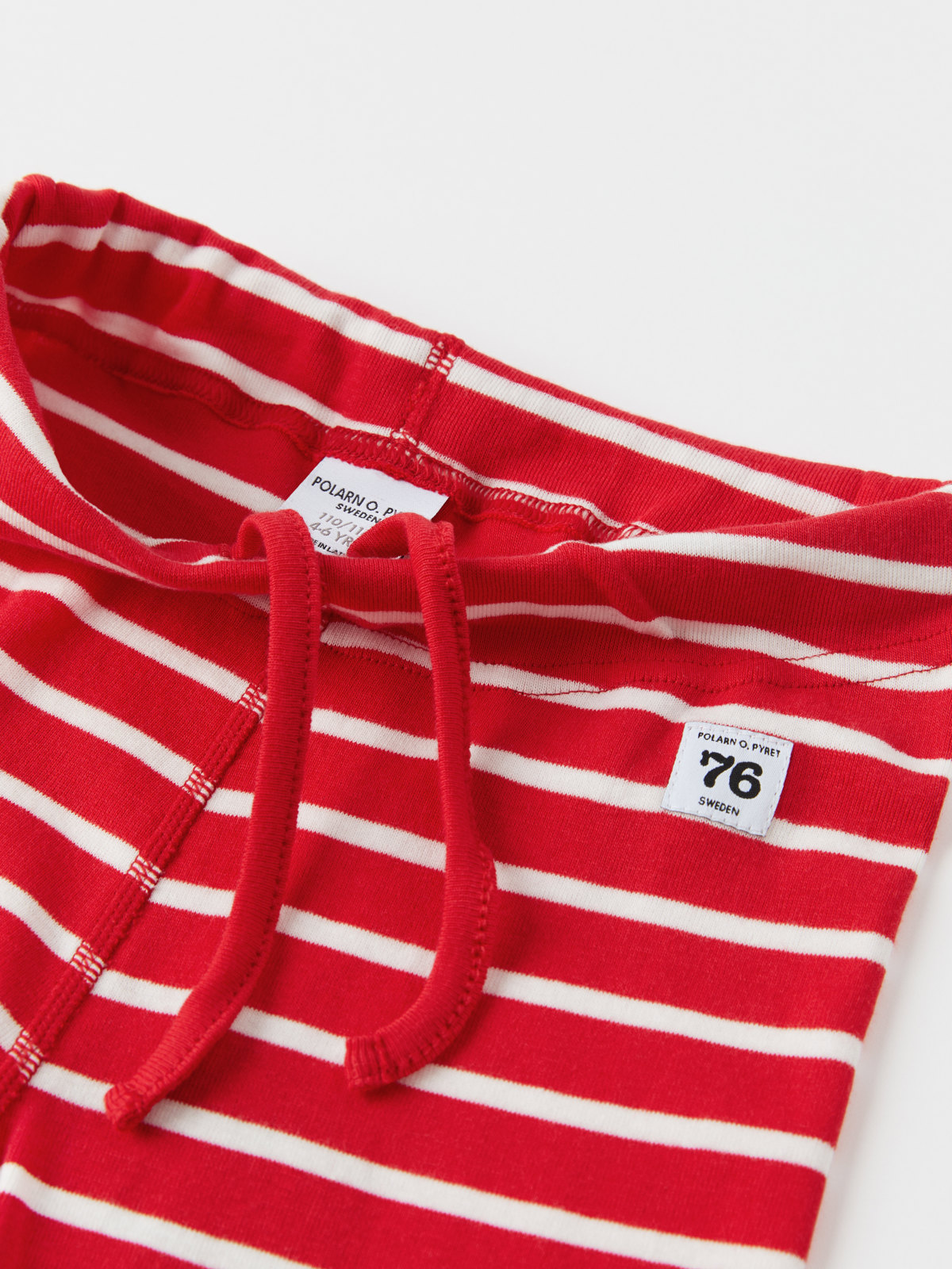 Stripet bukse i 100 % økologisk bomull. Buksen har våre klassiske striper og elastisk midje som kan reguleres med knytebånd. Buksen har også myke, elastiske vrangborder nederst på bena.