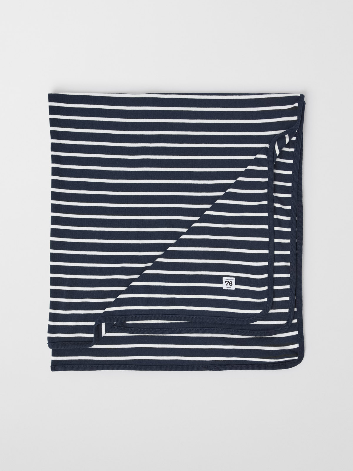 Pakk inn den lille i vårt myke babyteppe med våre klassiske striper, i 100 % økologisk bomull. Mål: 84 x 84 cm.