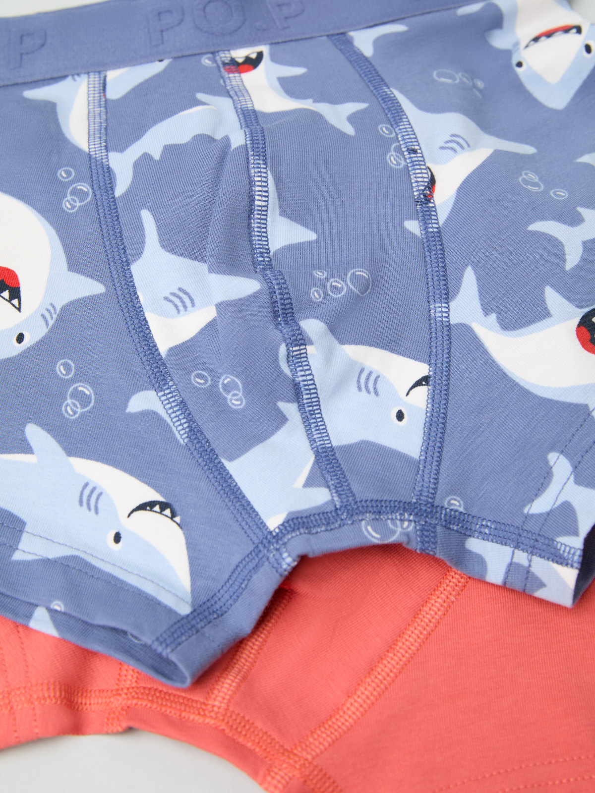 2-pakning boksershorts i myk økologisk bomull, med ekstra myke sømmer som ikke gnager. Det ene paret er helmønstret med hvaler og det andre er ensfarget.