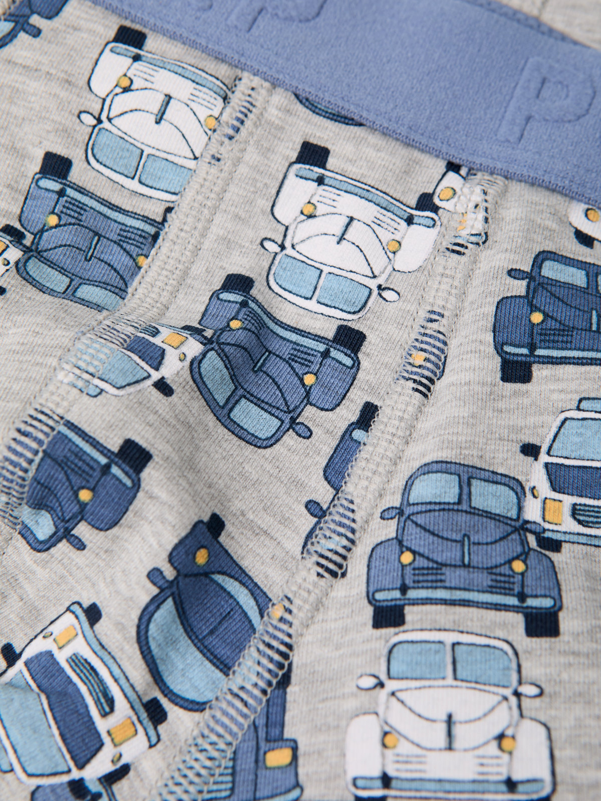 Boksershorts i myk økologisk bomull, helmønstret med biler. Boksershortsen har ekstra myke sømmer som ikke gnager.